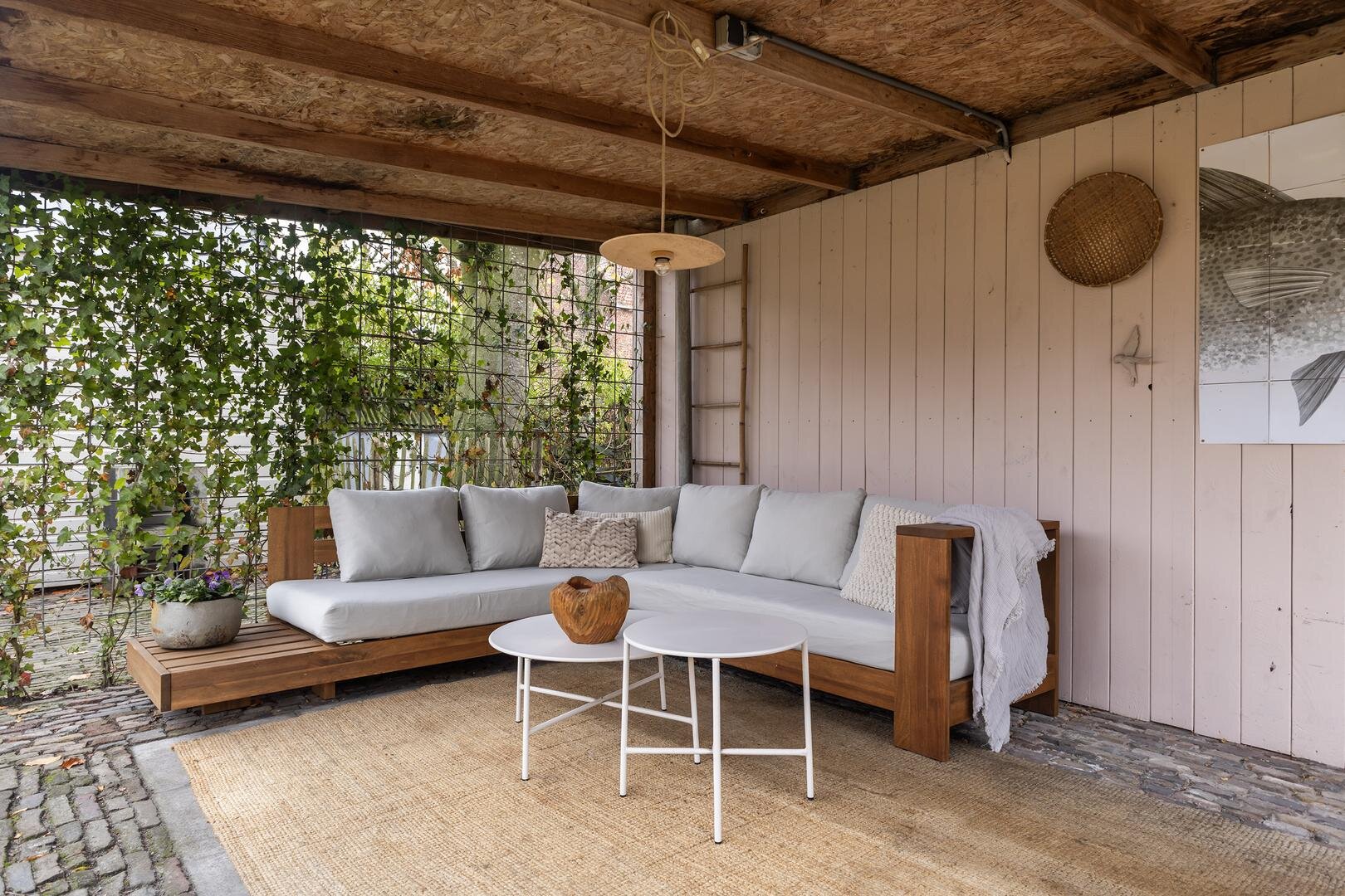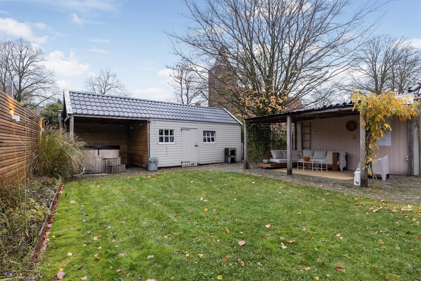 De fraaie aangelegde tuin met meerdere terrassen, is gelegen op het zonnige westen en is voorzien van een vrijstaande schuur met overkapping.