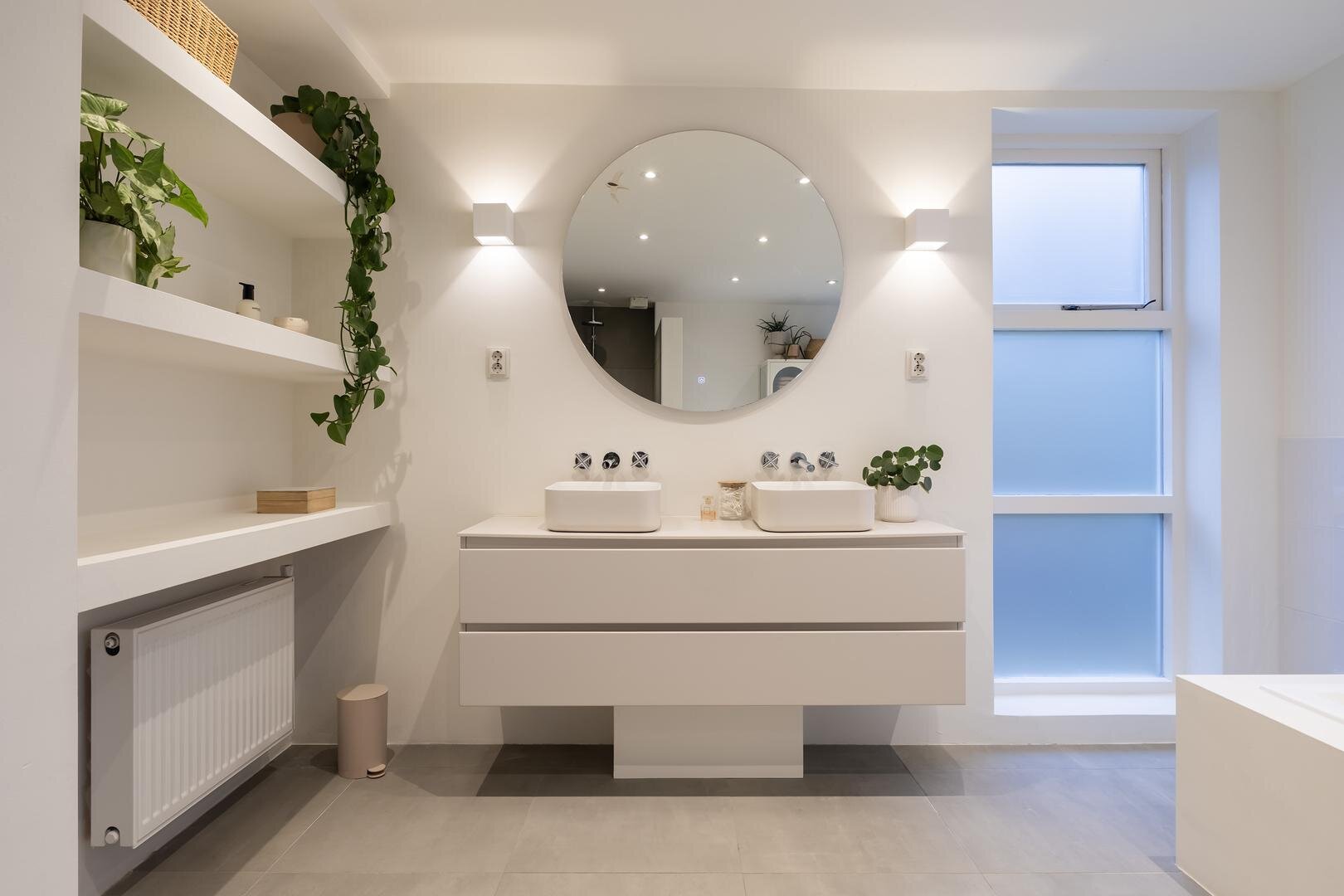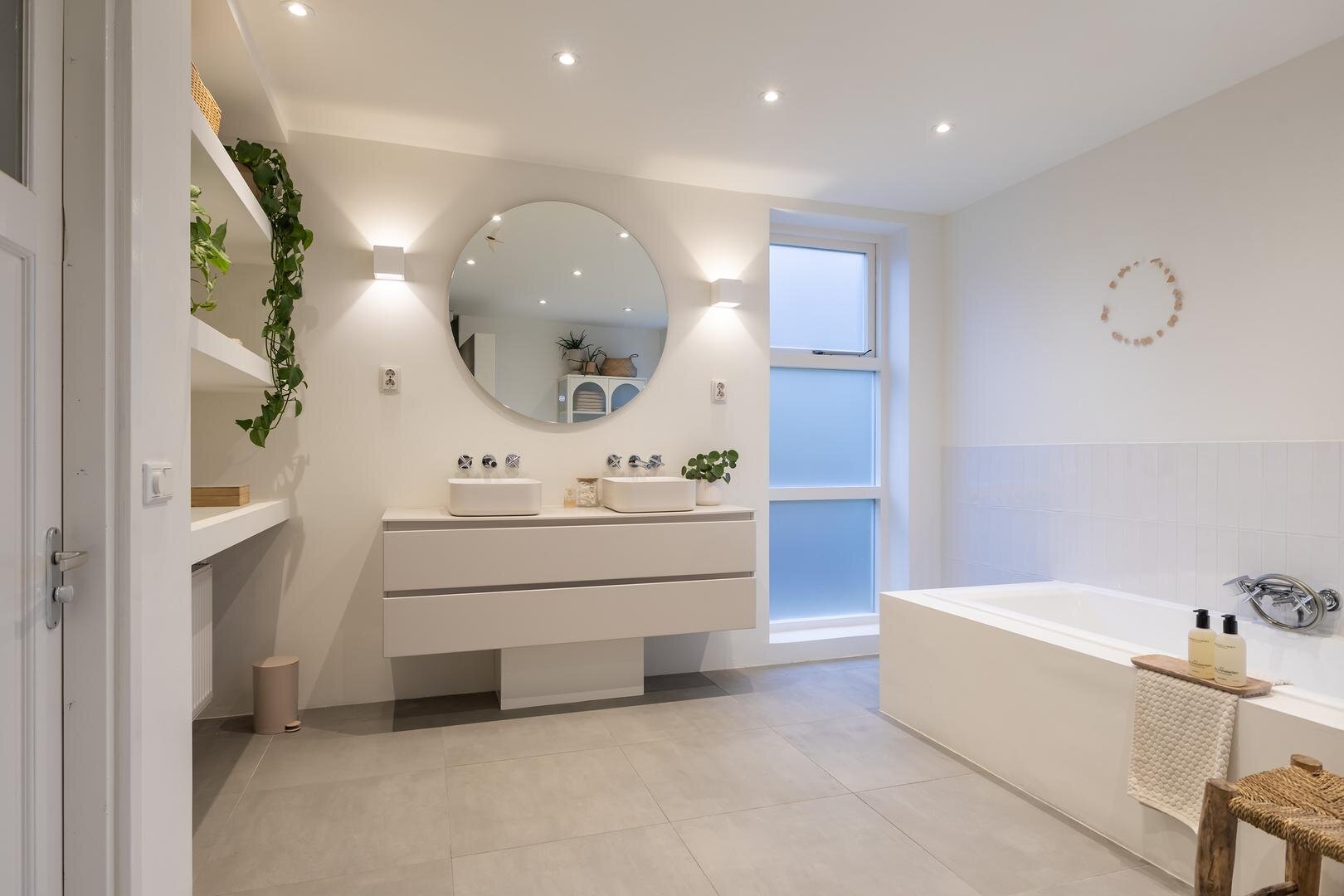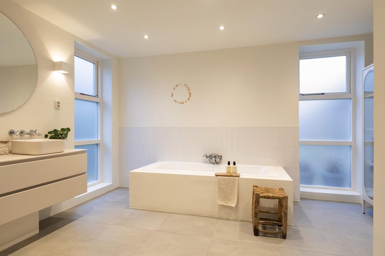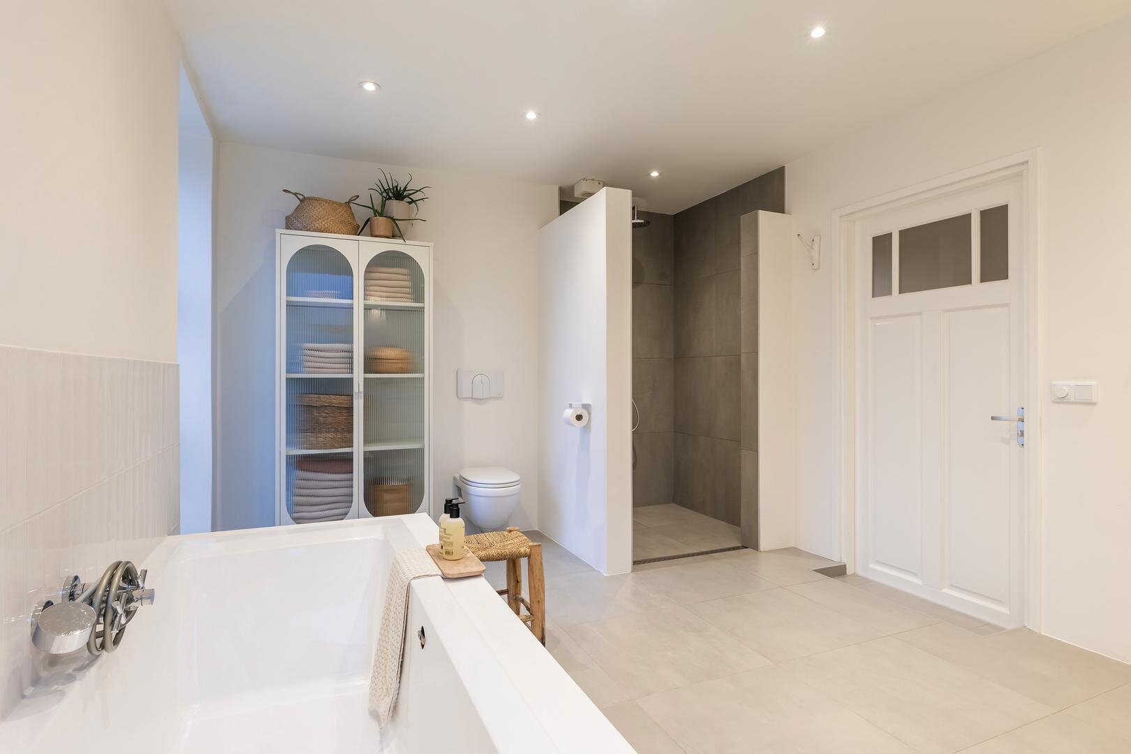 - royale en moderne badkamer v.v. ligbad, dubbele wastafel, 2e toilet en inloopdouche