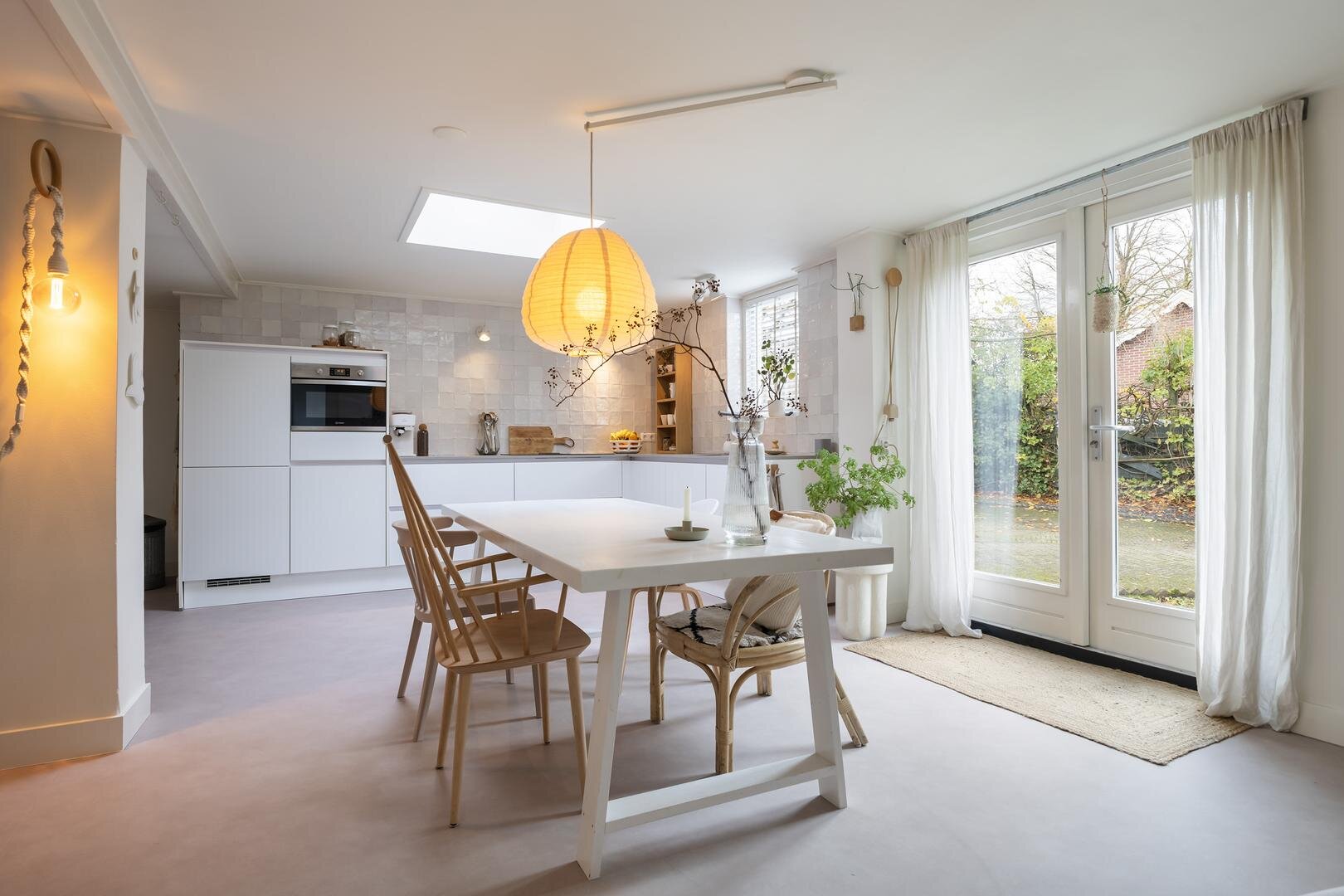 - heerlijke woonkeuken met openslaande deuren naar de tuin en houtkachel