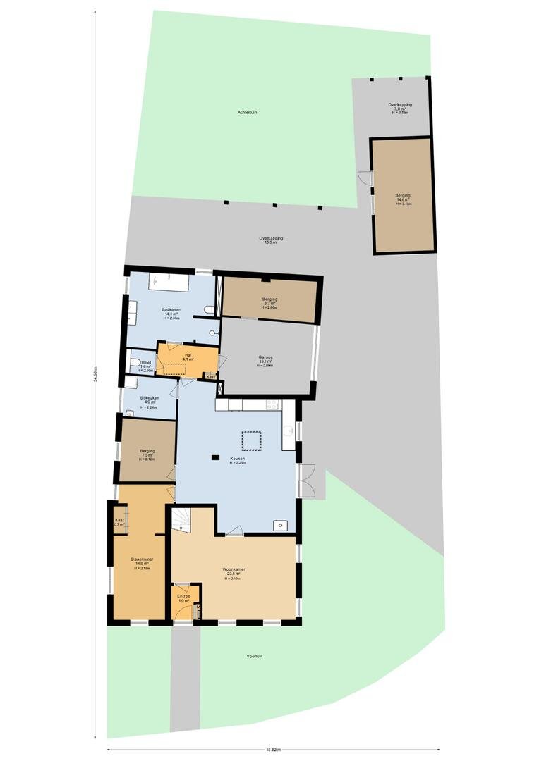 - 2 slaapkamers op de begane grond (circa 8 en 15 m2)