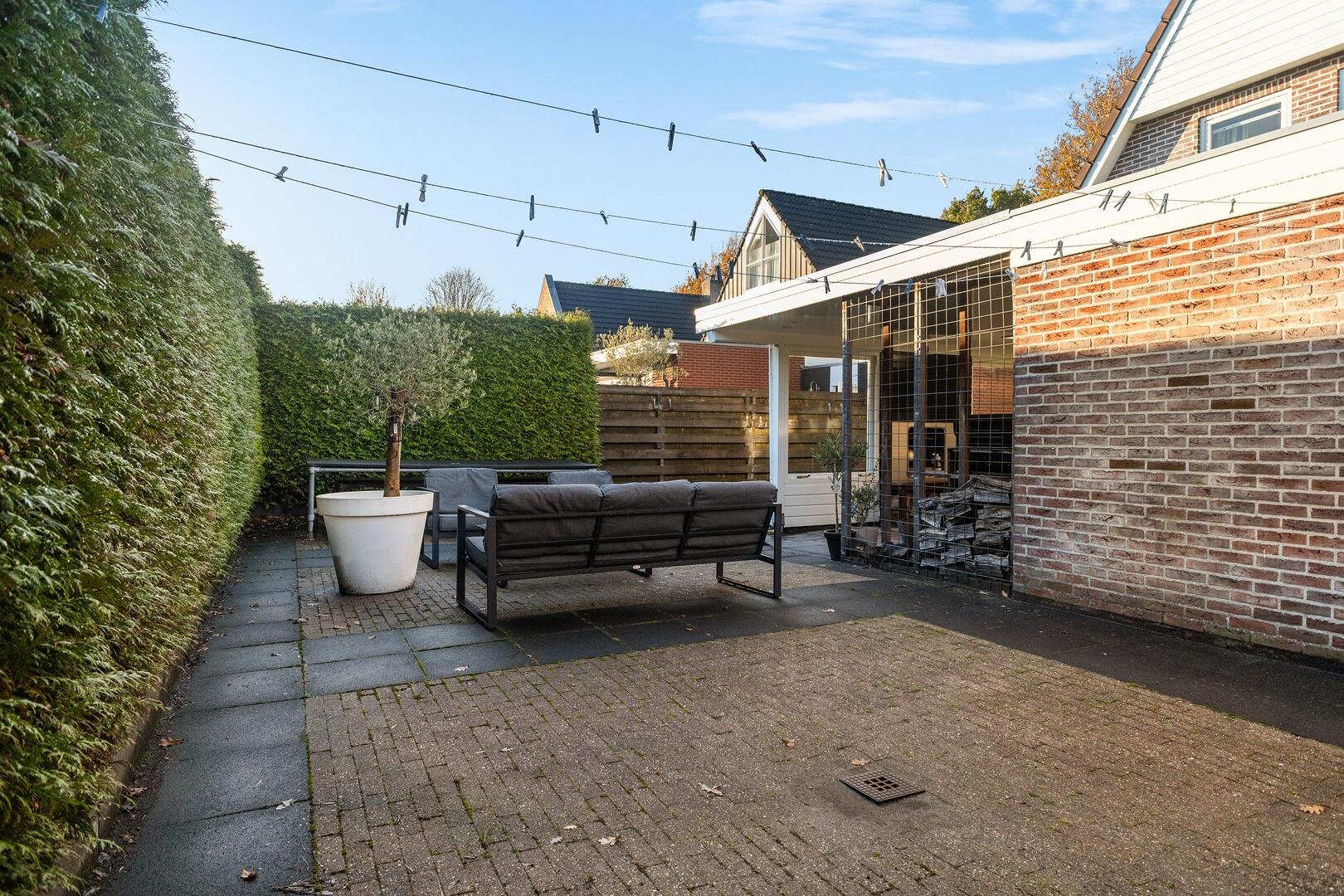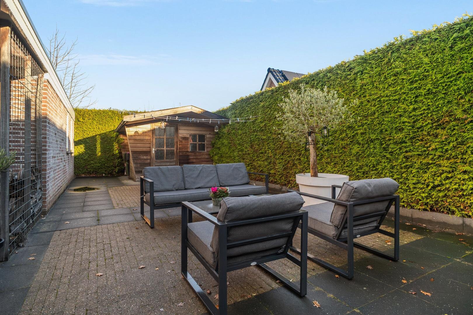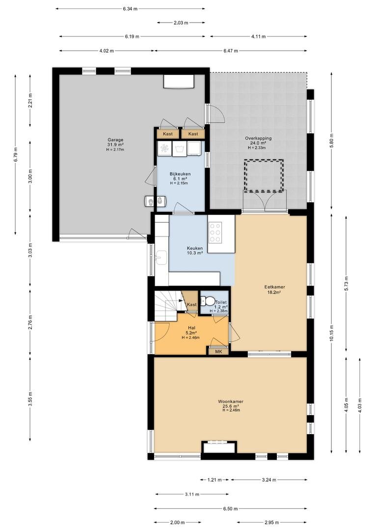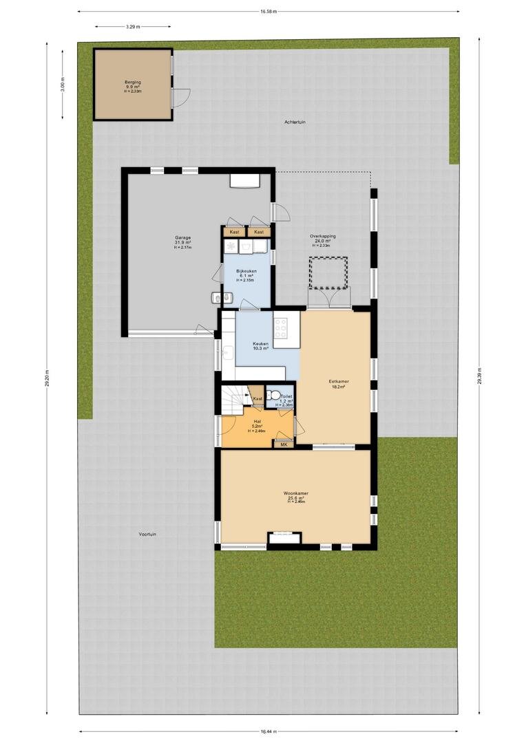 - L-vormige garage (circa 31 m2) met vaste kasten