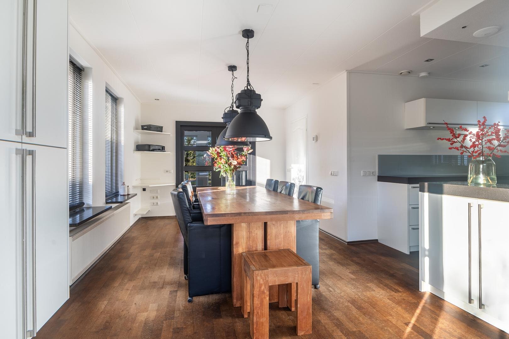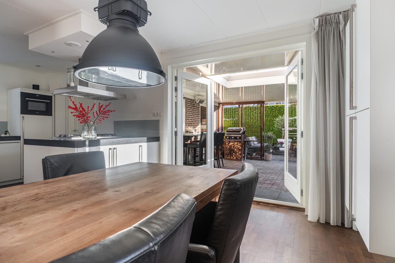 - woonkeuken met fijne eetkamer met openslaande deuren naar de serre