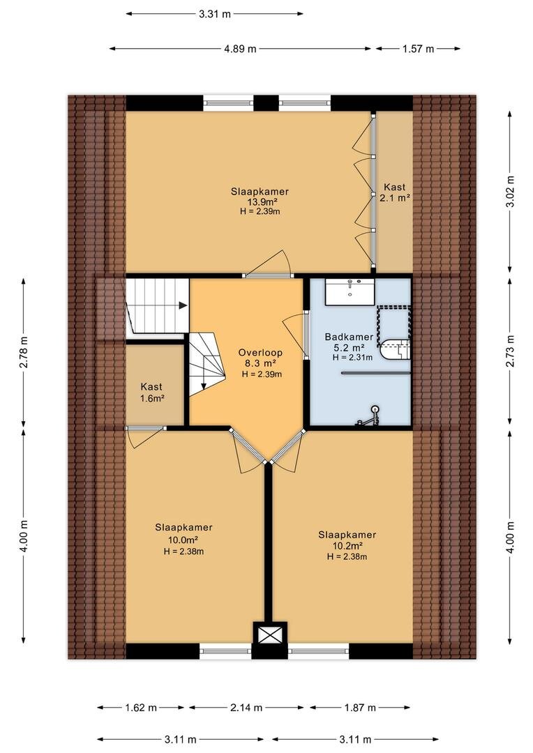 - 2e en 3e slaapkamer aan de voorzijde van de woning (beide circa 10 m2)