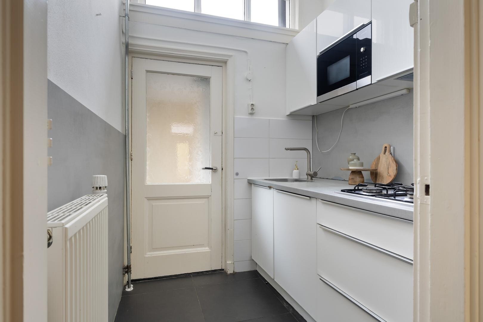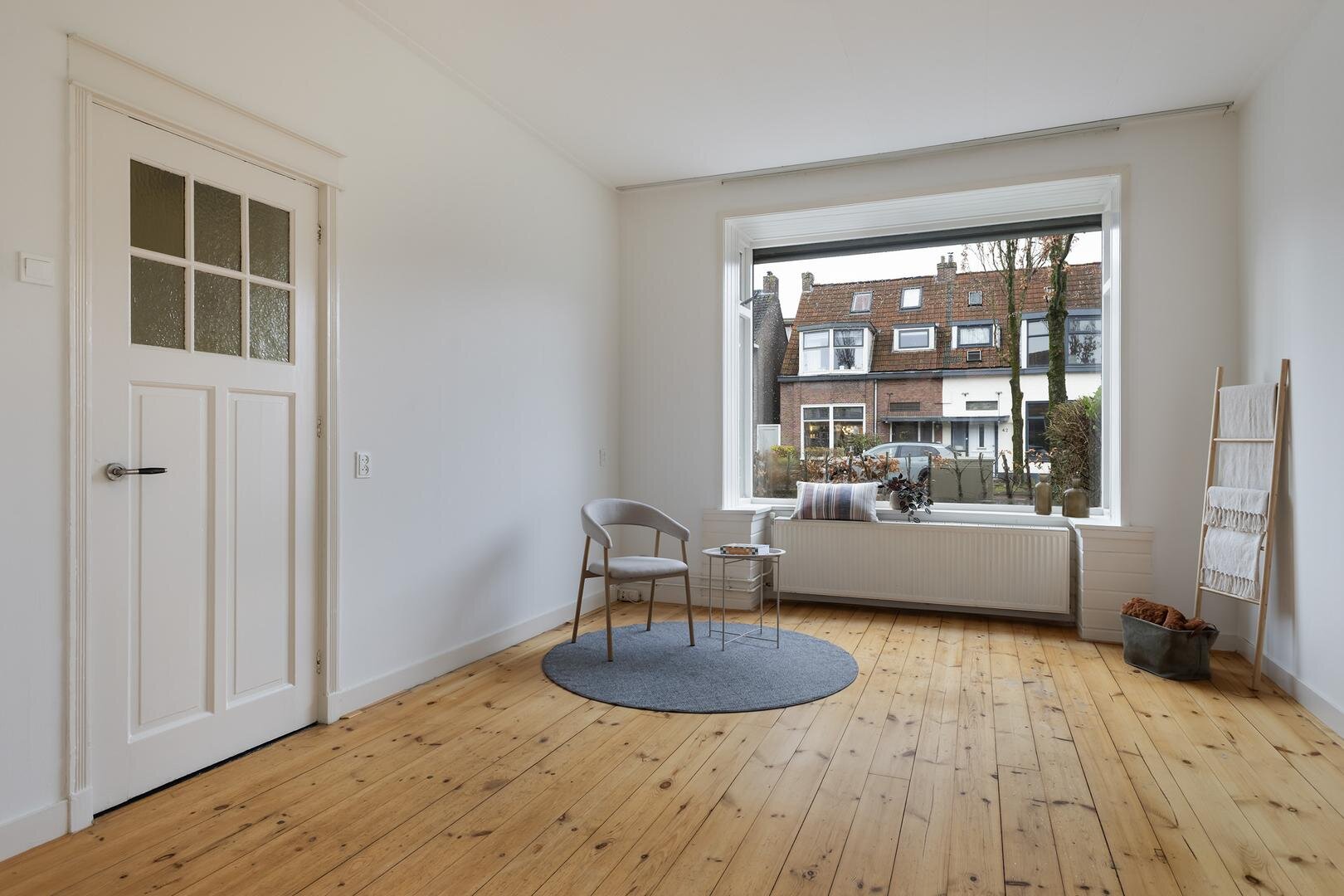 Binnen is de woning functioneel ingedeeld met op de begane grond een lichte woonkamer met kamer en suite, welke voorzien is van een grenen vloer, erker en authentieke marmeren schouwen. Verder is er een dichte keuken met inbouwapparatuur en een bijkeuken met toilet en cv-ketel opstelling. Op de eerste verdieping zijn drie ruime slaapkamers en een badkamer gesitueerd. De tweede verdieping is bereikbaar via een vaste trap en wordt gebruikt als bergruimte.