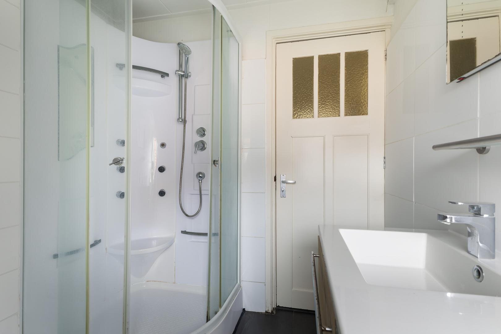 - badkamer met douchecabine, wastafel met meubel en mechanische ventilatie