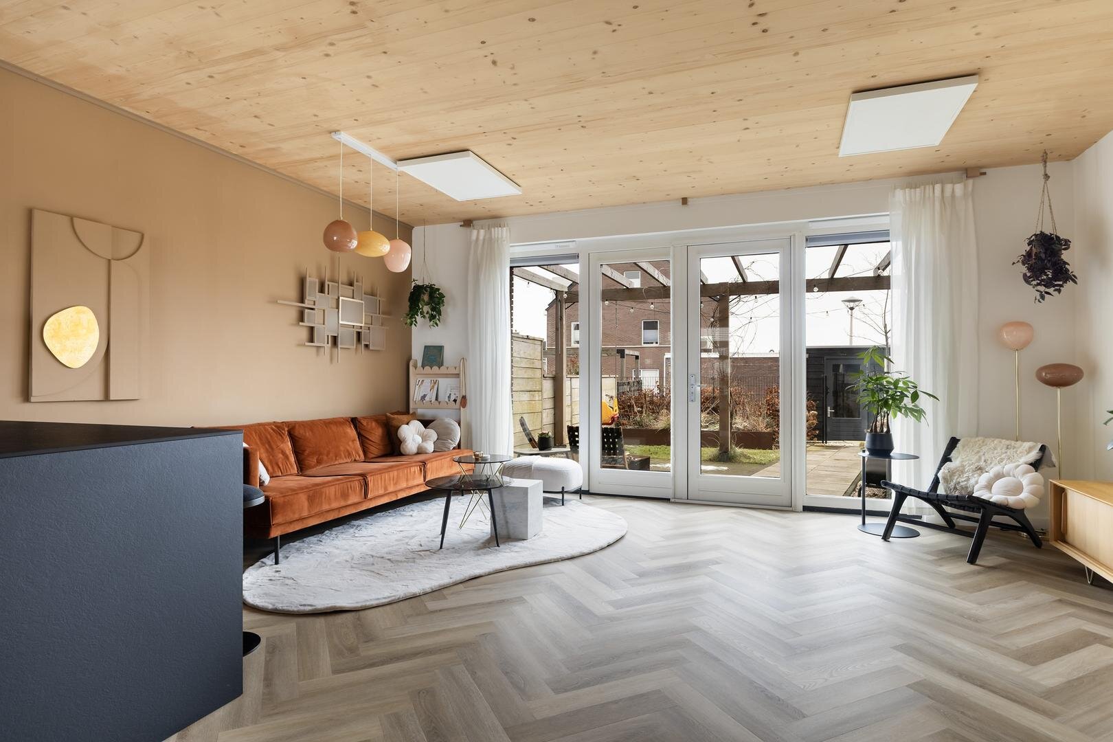 - de gehele begane grond is voorzien van visgraat PVC-vloer