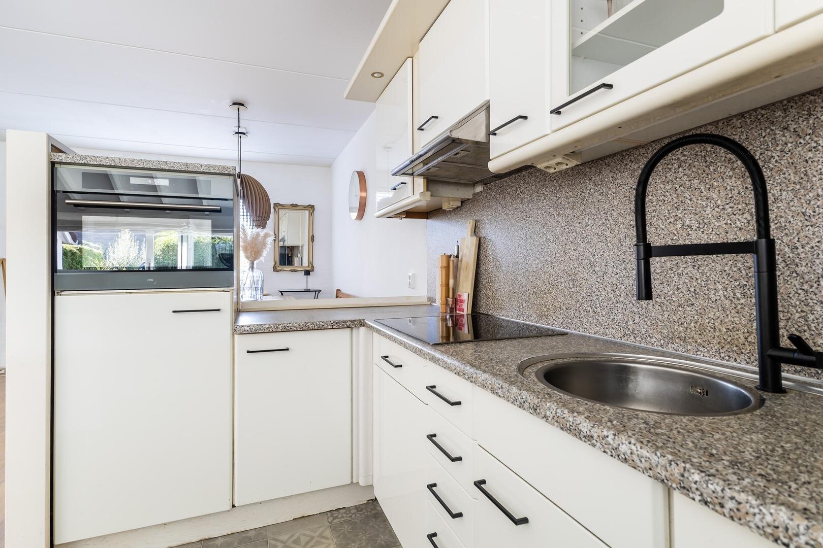 -open keuken v.v. inductiekookplaat, afzuigkap, vaatwasser en combi-oven (apparatuur vernieuwd in 2022)