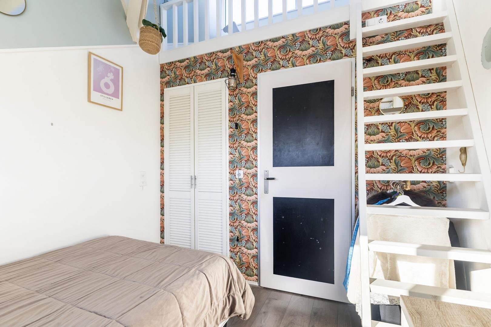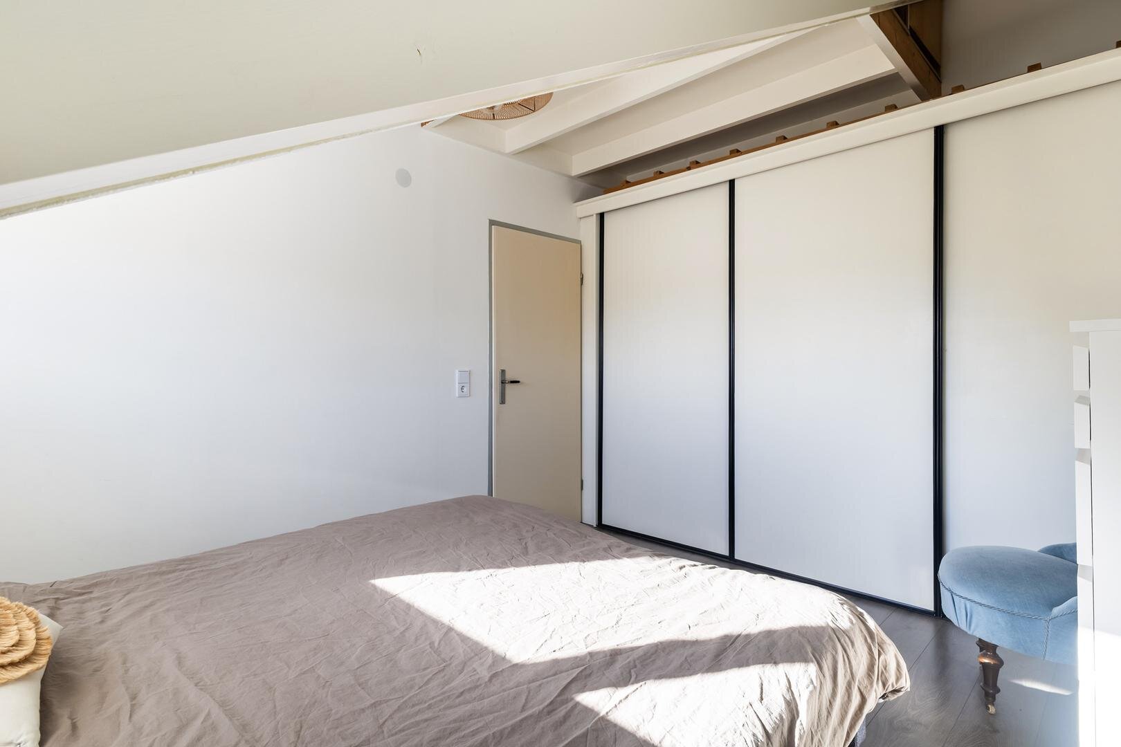 -1e slaapkamer met vaste kast en vide (circa 7 m²) aan de achterzijde van de woning