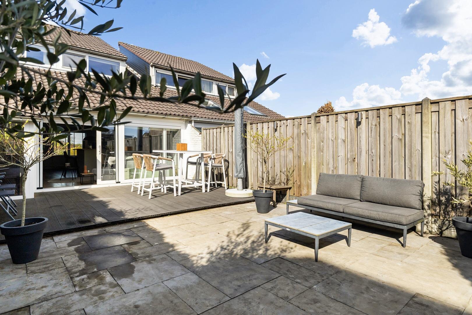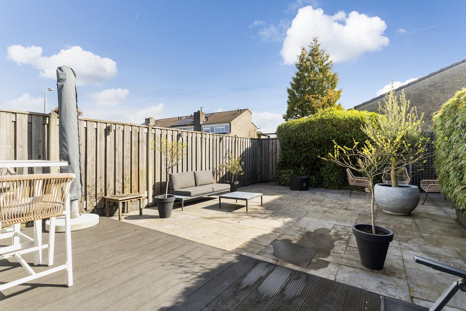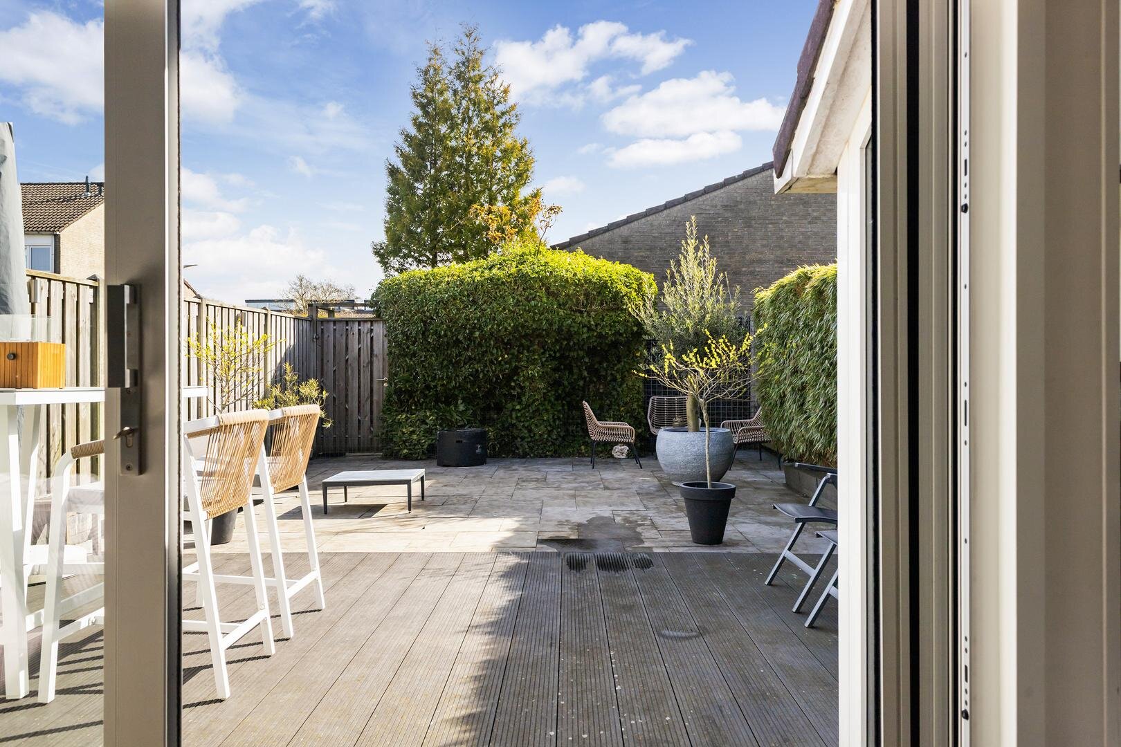 -ruime zonnige tuin met veel privacy en achterom