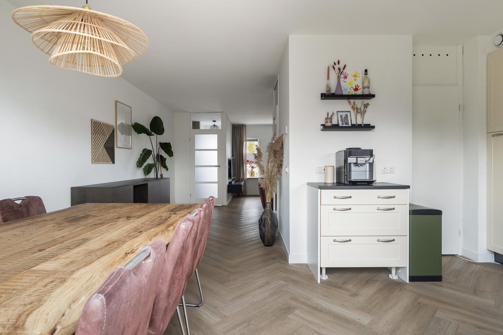- gehele begane grond is voorzien vloerverwarming en visgraat PVC-vloer