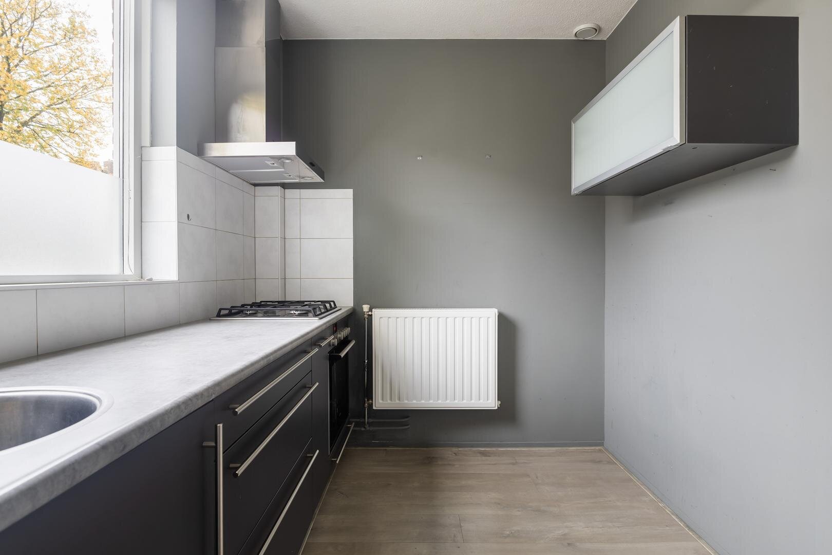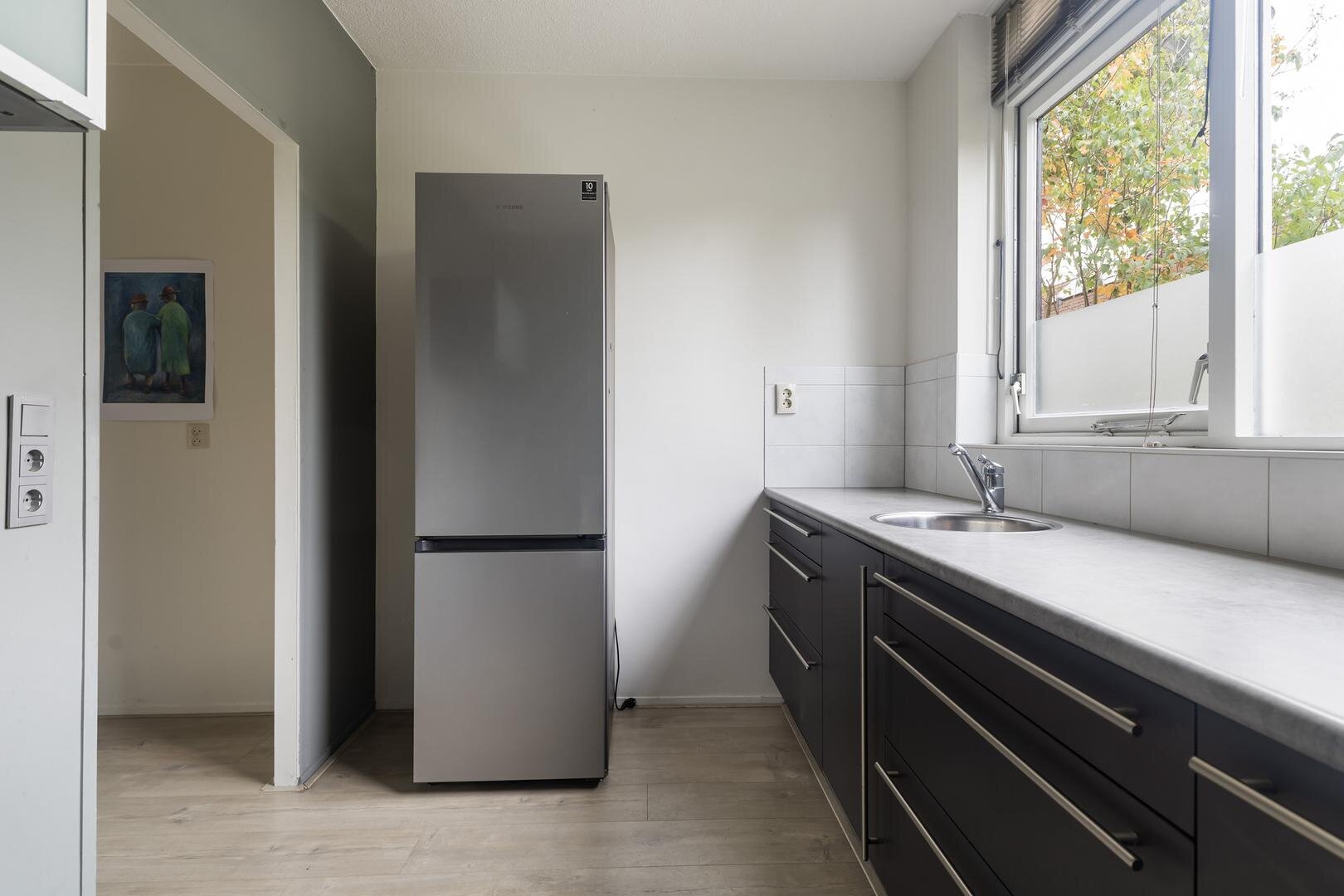 * keuken met inbouwapparatuur: oven, 4-pits gaskookplaat en losse koelkast