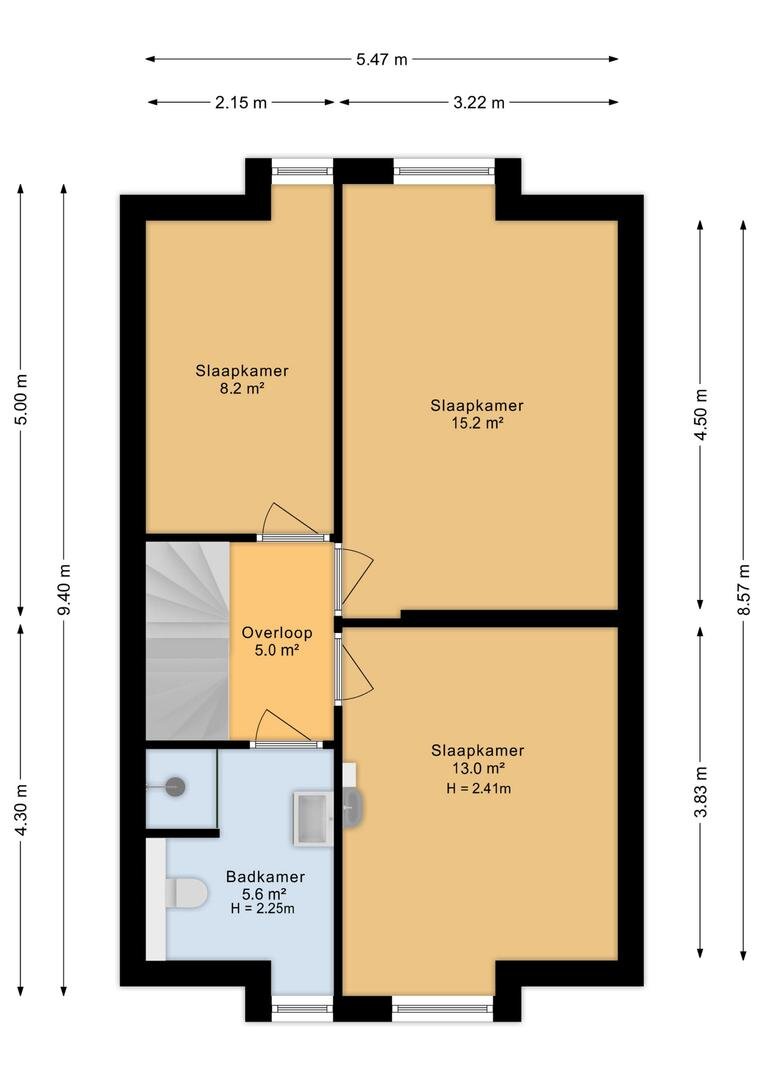 * 1e en 2e slaapkamer aan de achterzijde van de woning (circa 8 en 15 m²)
