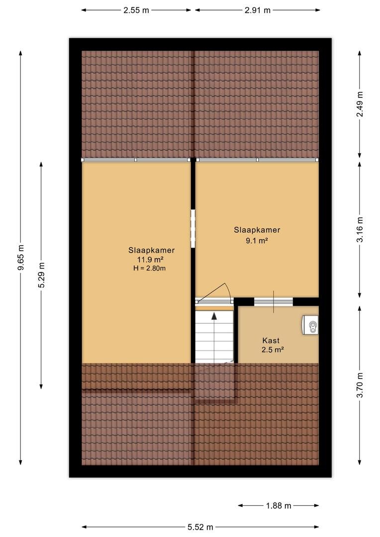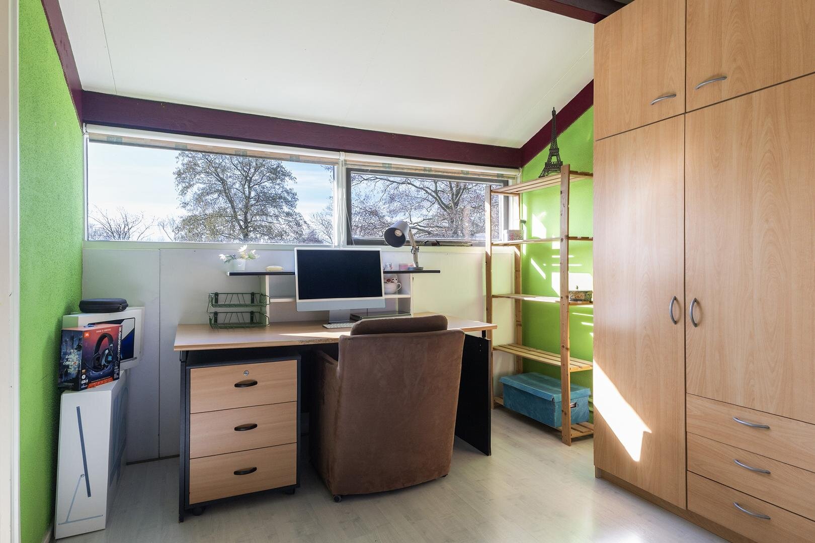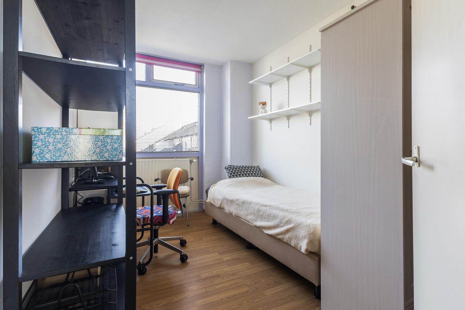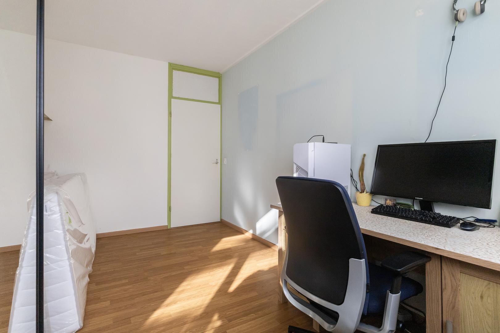 - 3e slaapkamer (circa 12m²) aan de achterzijde van de woning
