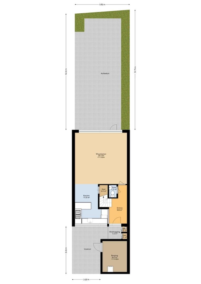 - kastruimte (circa 2,5m²) aan de voorzijde van de woning
