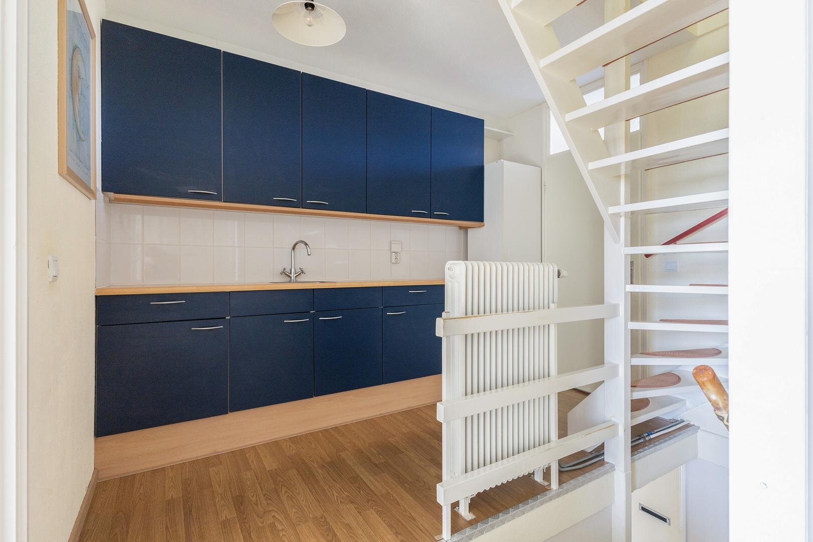 De woning beschikt over een lichte woonkamer en een halfopen moderne keukenopstelling, waardoor de begane grond een prettige leefruimte vormt.