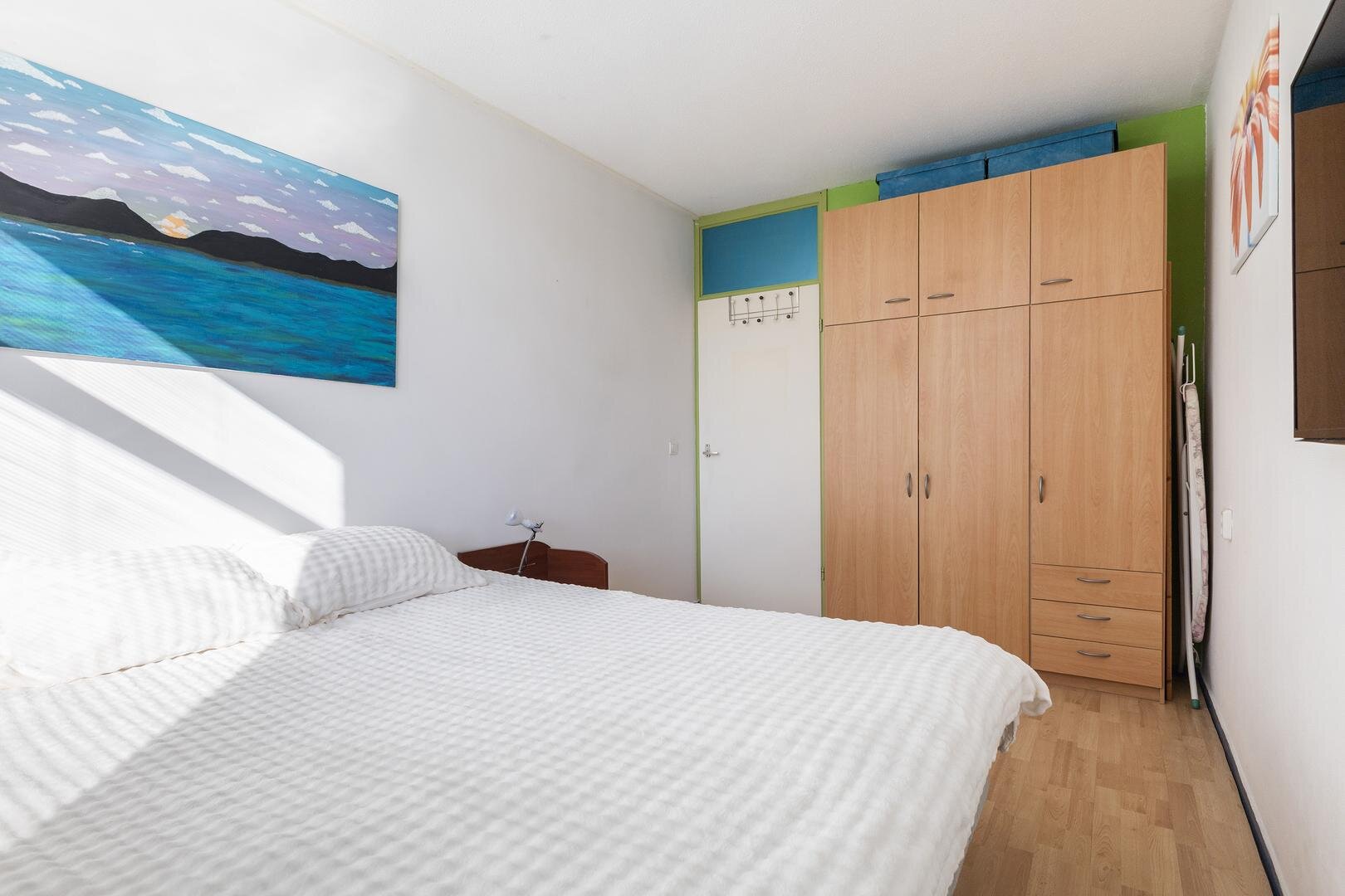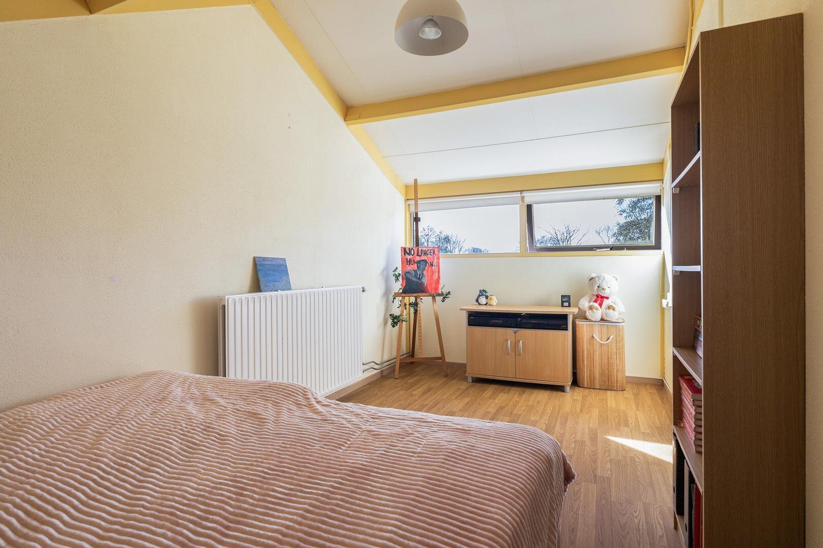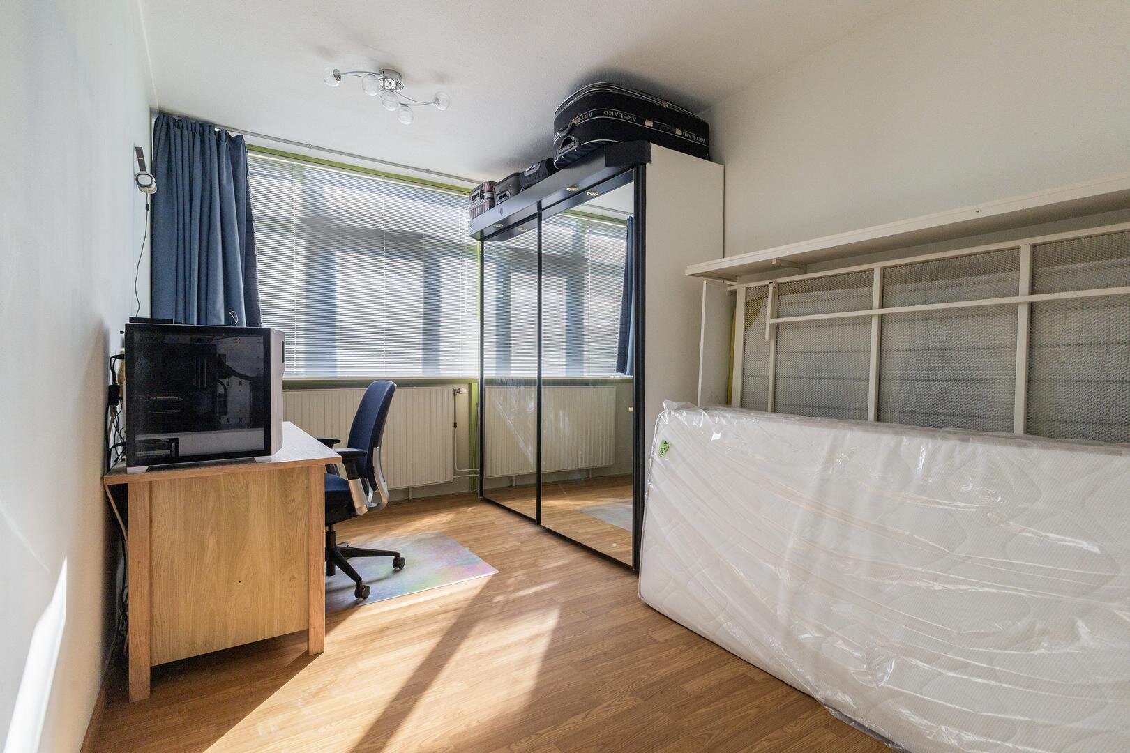 - 1e slaapkamer (circa 12m²) aan de voorzijde van de woning