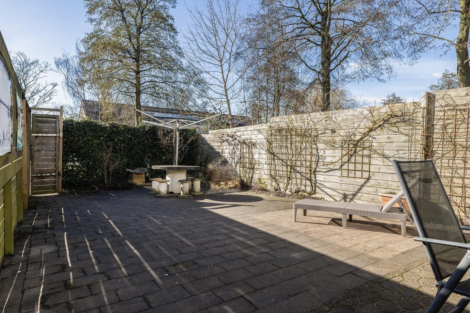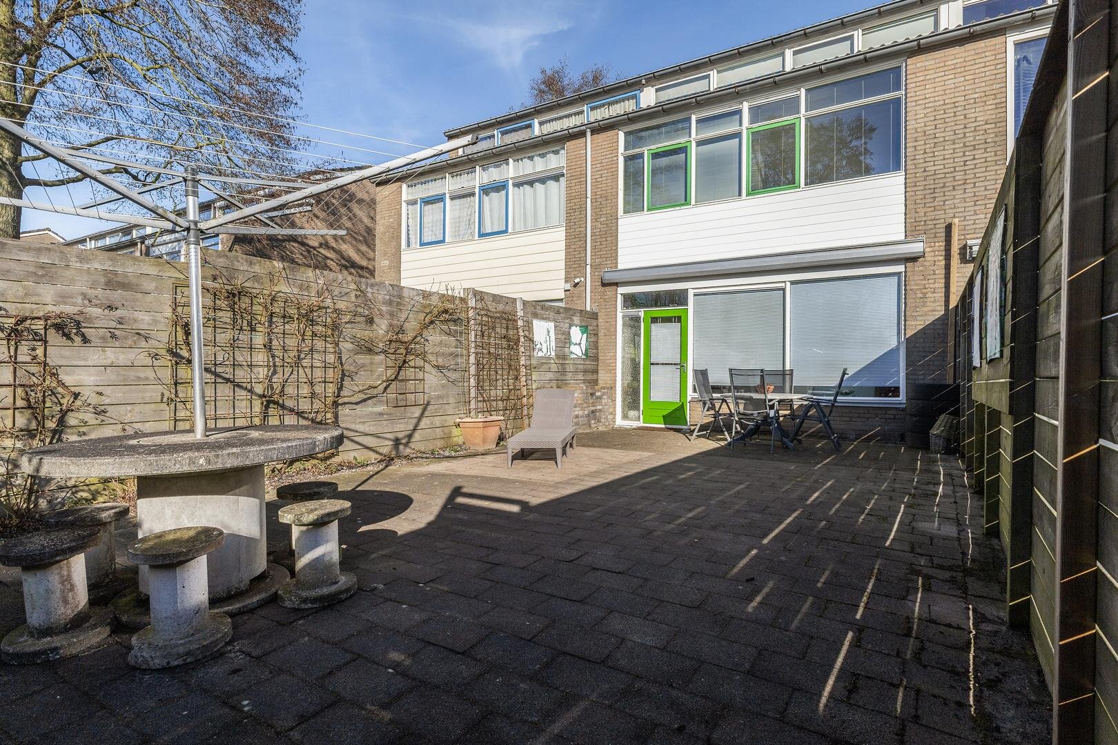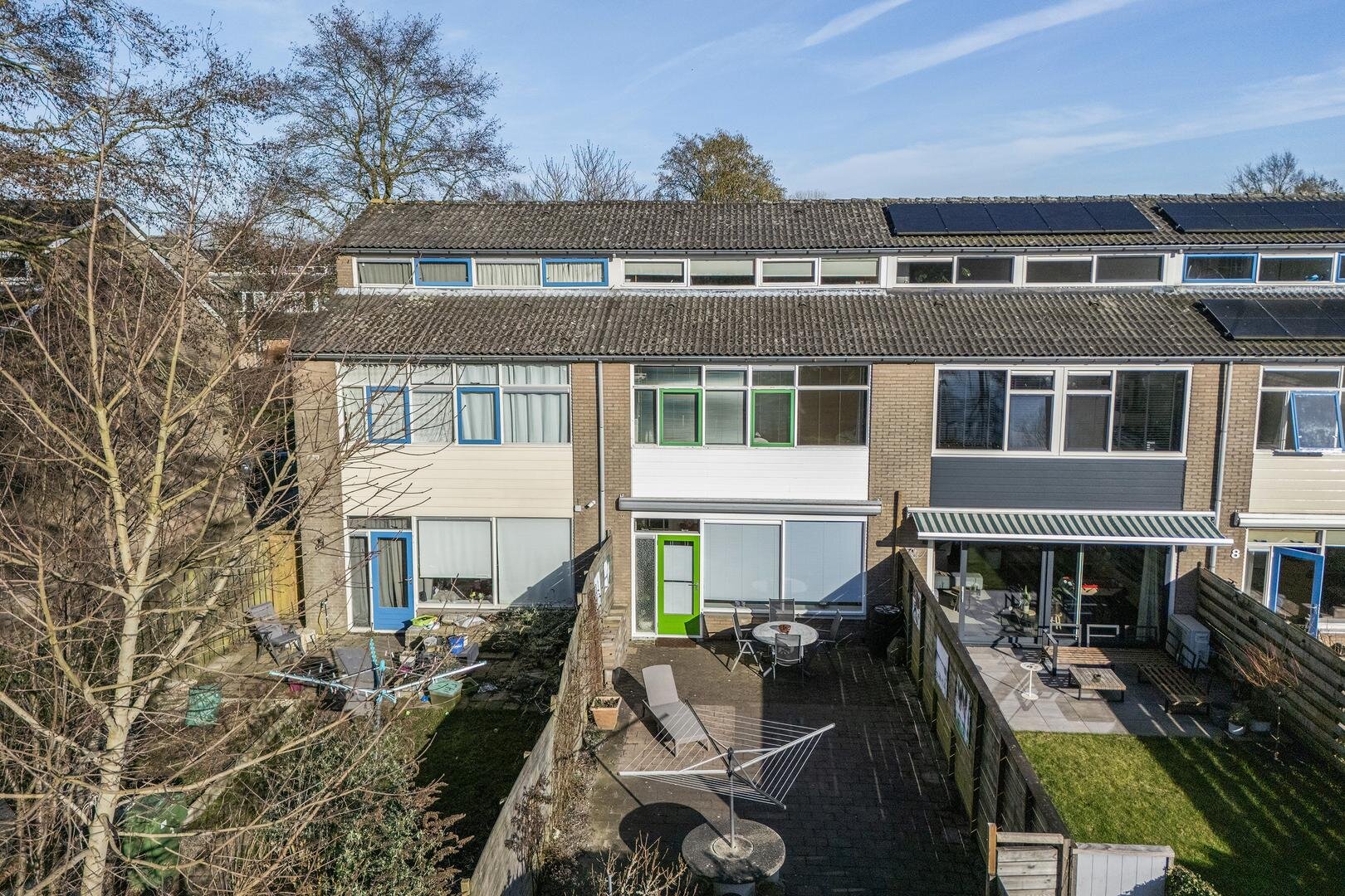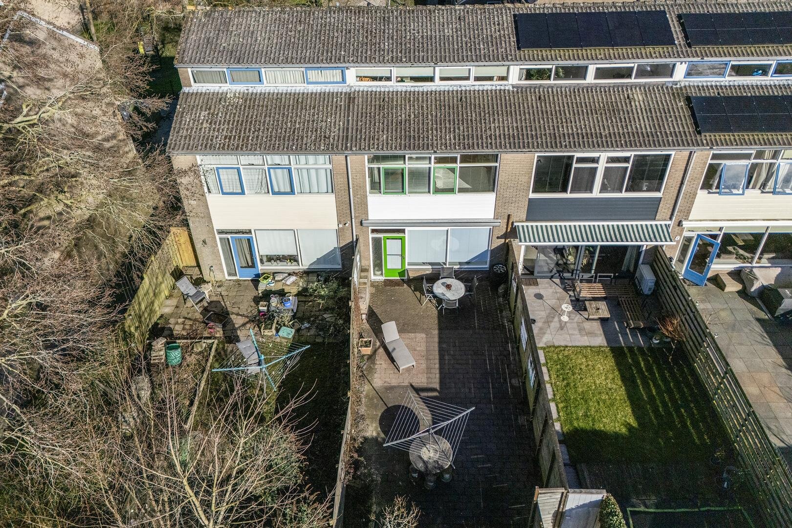 De woning beschikt over een diepe achtertuin, gelegen op het westen, met een achterom, van waaruit je direct op de straat staat met ruime openbare parkeermogelijkheden.