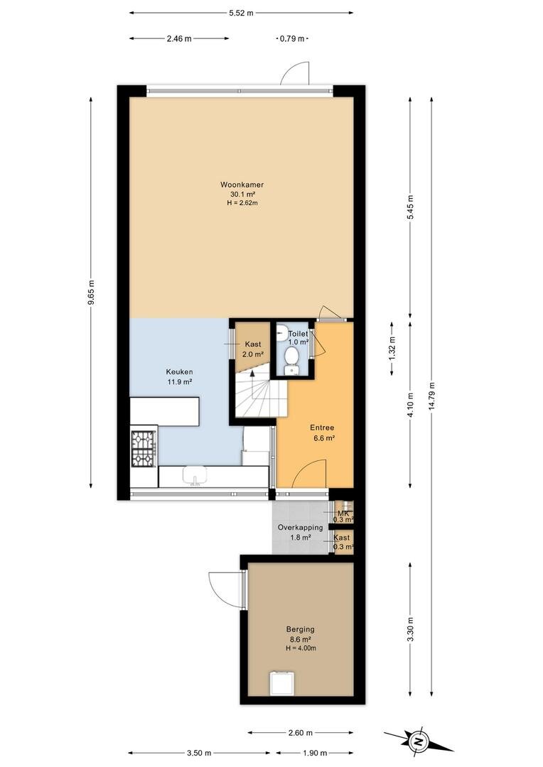 - Entree/hal met meterkast, trapopgang en toegang tot het toilet en de woonkamer