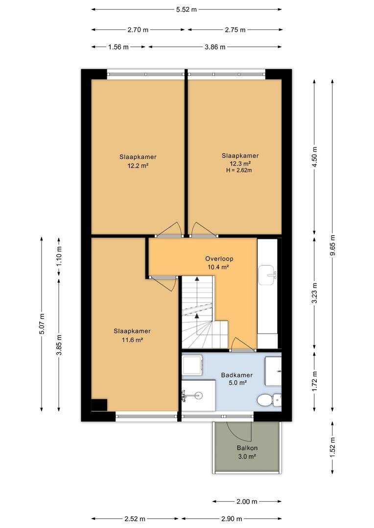 - overloop (geeft tevens mogelijkheid tot het creëren van een slaapkamer)