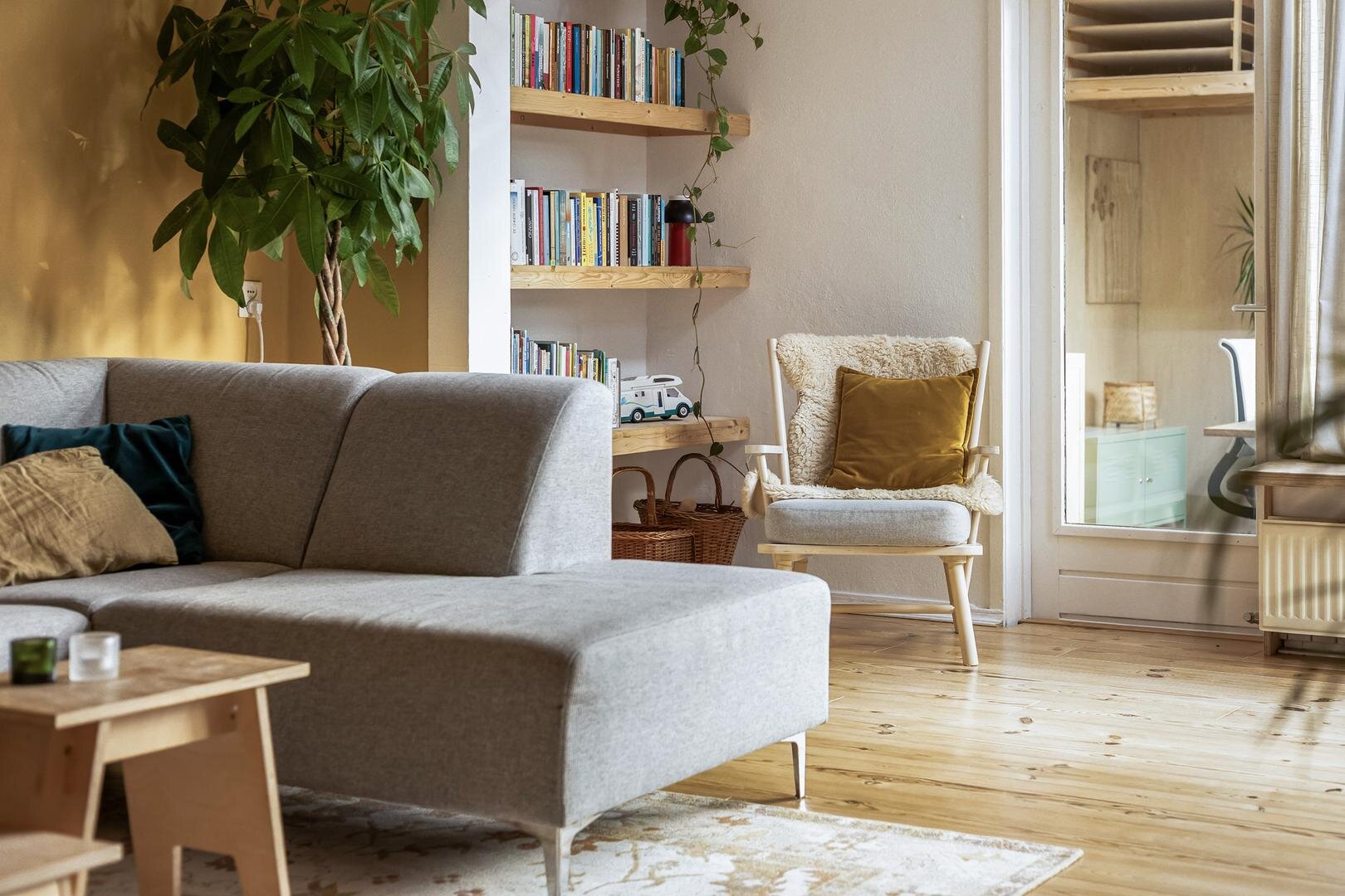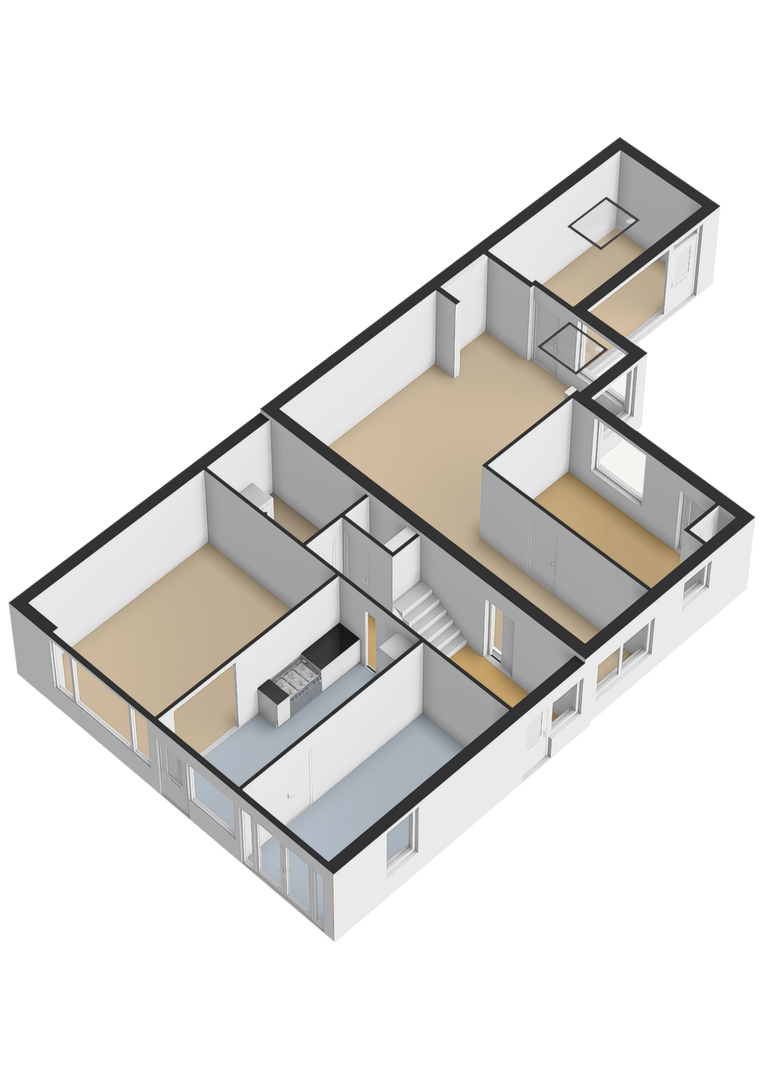 - aan de achterzijde van de woning is de L-vormige woonkamer (circa 36 m2) gelegen