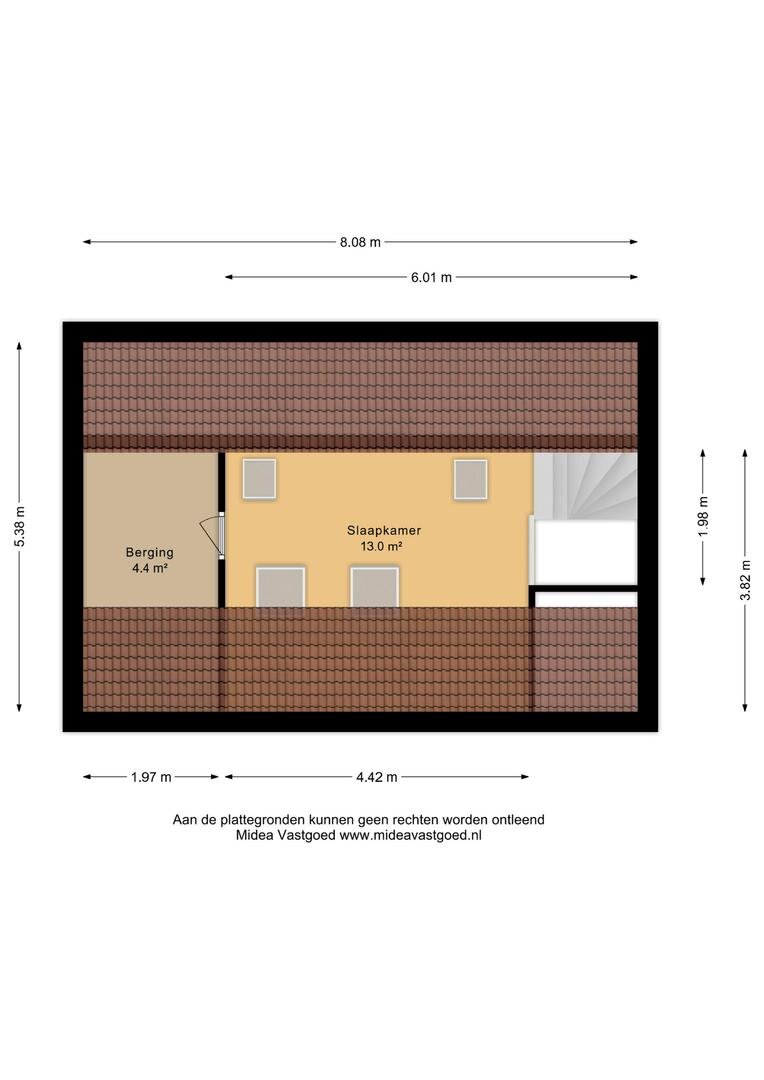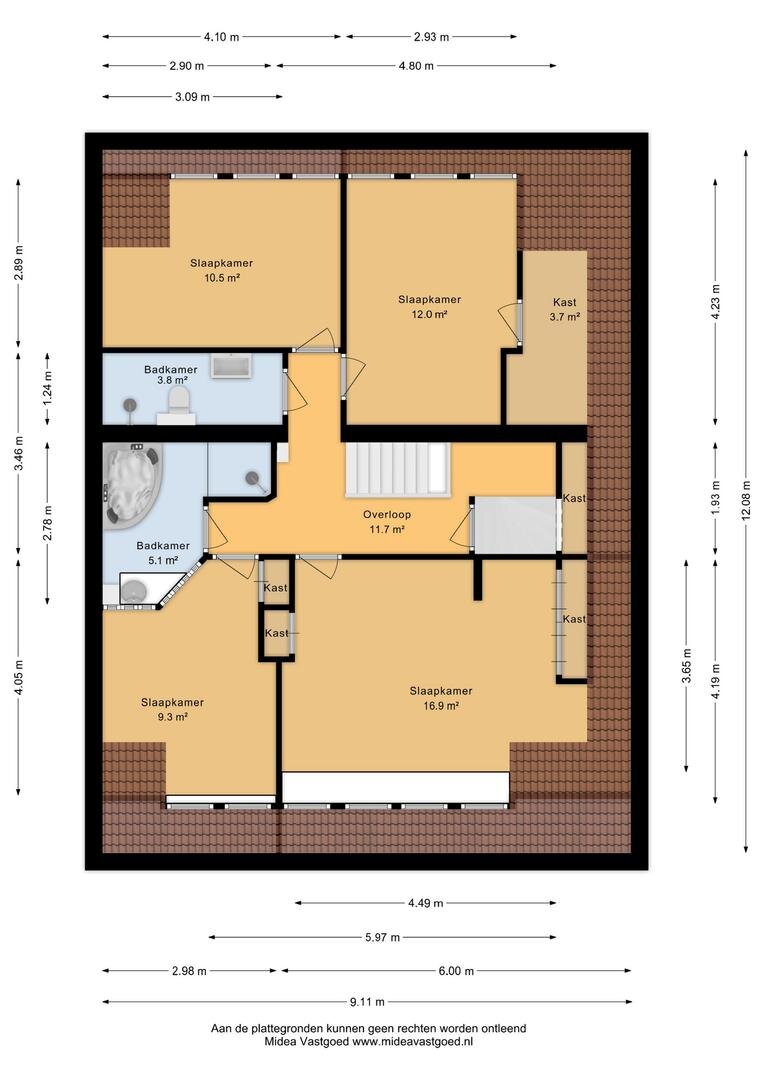 - aan de voorzijde van de woning zijn de 3e en 4e slaapkamer gelegen (circa 10 en 19 m2)