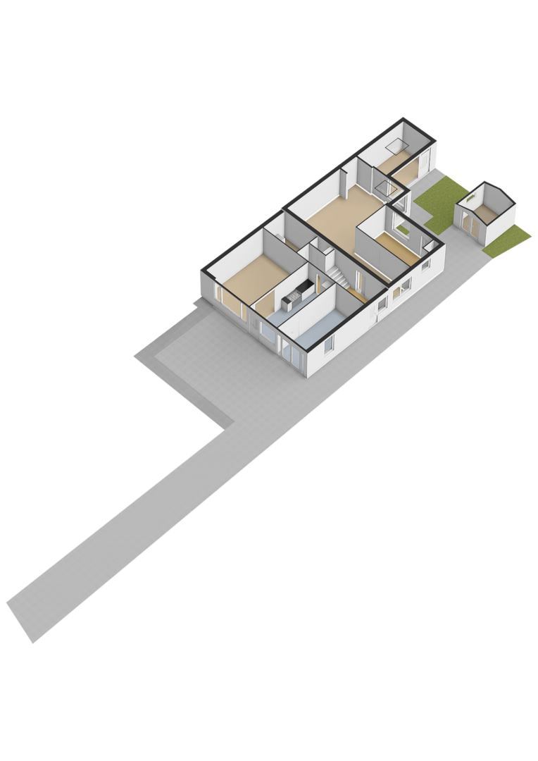 - 1e slaap- of werkkamer met loopdeur naar de achtertuin (v.v. cv-opstelling)