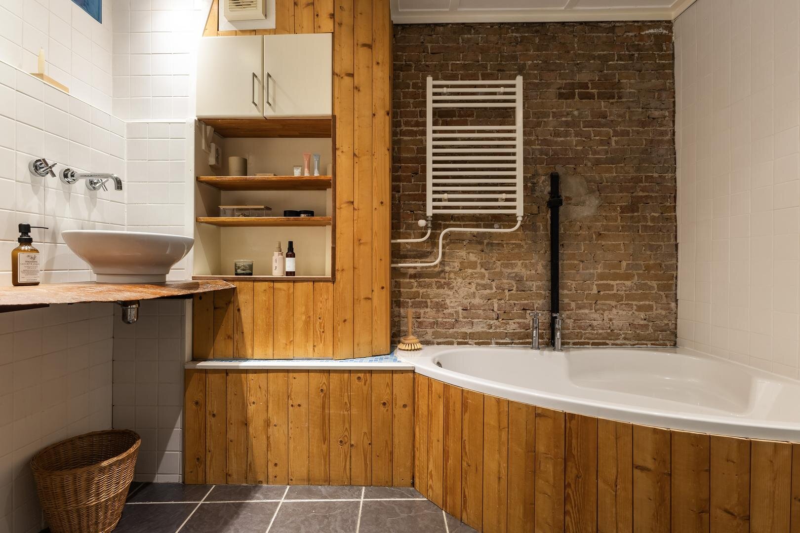 - 1e badkamer met hoekbad, inloopdouche en wastafel