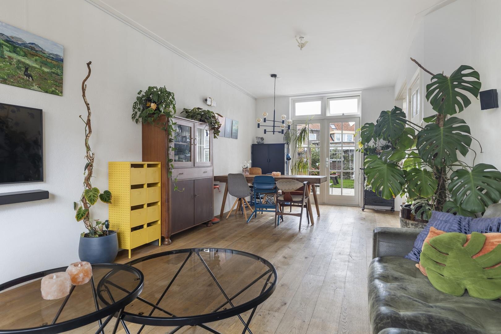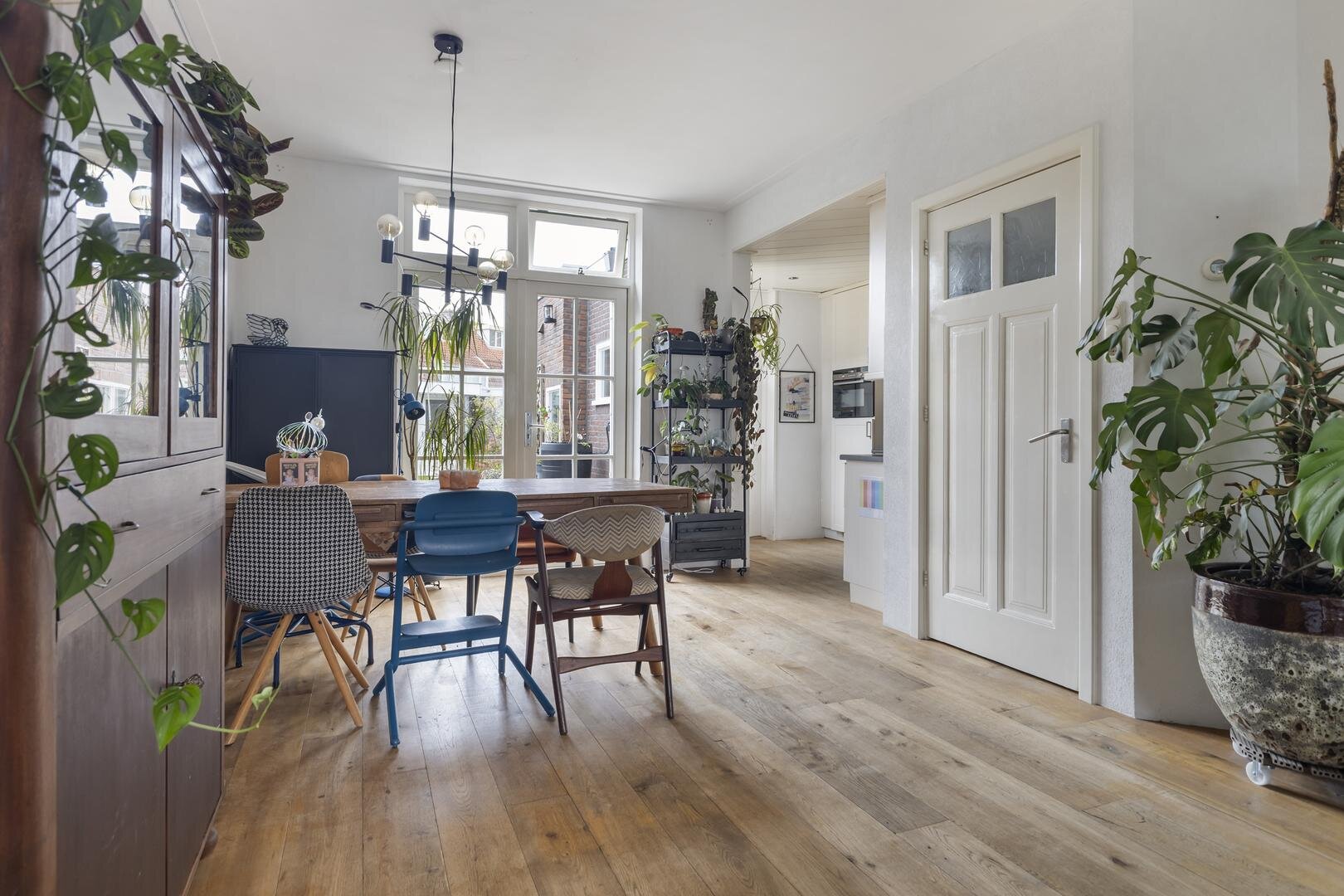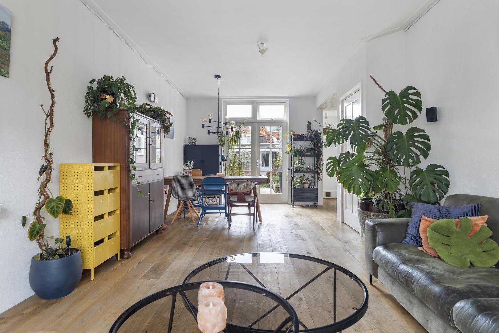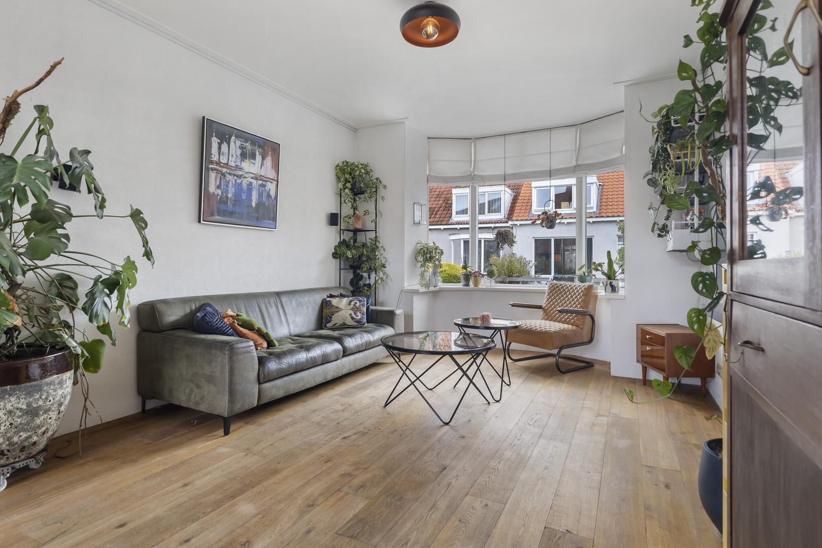 De sfeervolle woonkamer beschikt over hoge plafonds, een eikenhouten vloer met vloerverwarming en grote raampartijen die voor veel natuurlijk lichtinval zorgen. Dankzij de erker en de openslaande deuren naar de zonnige en beschutte tuin, voelt het ruim en aangenaam aan. Er is een open keuken met aansluitend een praktische bijkeuken, waar de CV-ketel, wasmachine-aansluiting en het toilet gevestigd zijn. De eerste verdieping biedt 3 slaapkamers en een badkamer, de zolderverdieping beschikt over een dakkapel over de hele breedte van de woning en 2 slaapkamers. De woning heeft door de jaren heen altijd het nodige onderhoud gehad en recent is de bitumen dakbedekking vervangen.