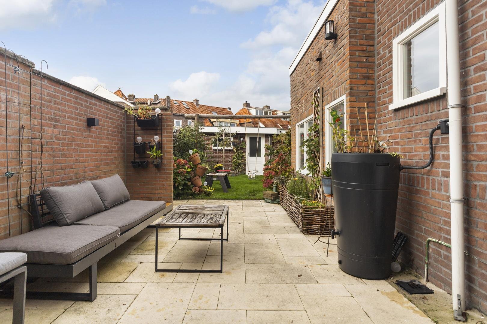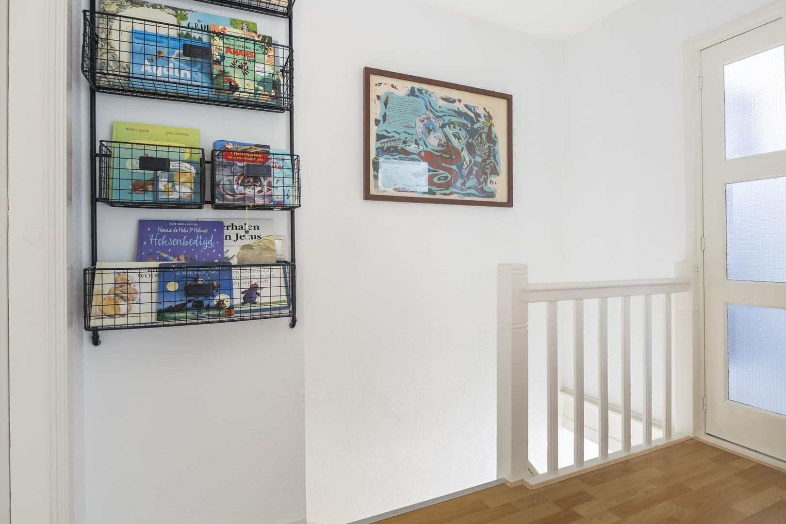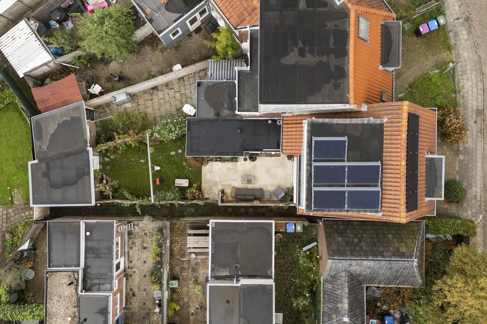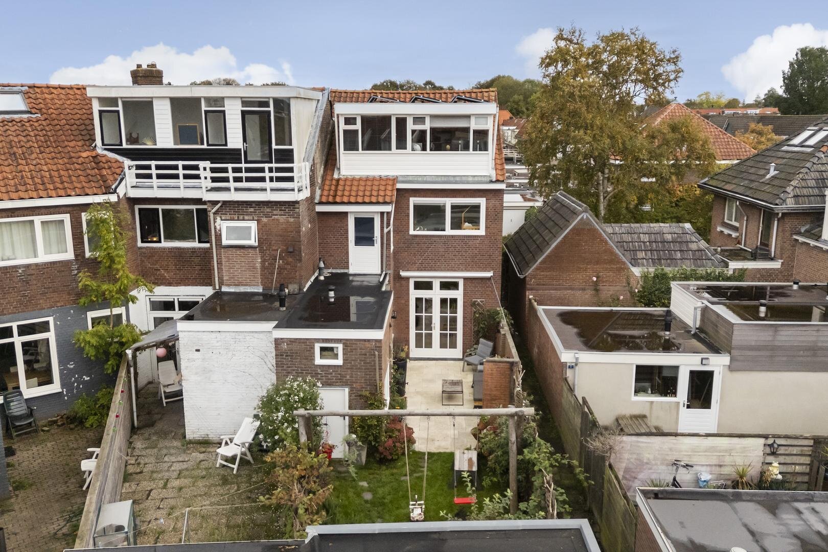 De sfeervolle woonkamer beschikt over hoge plafonds, een eikenhouten vloer met vloerverwarming en grote raampartijen die voor veel natuurlijk lichtinval zorgen. Dankzij de erker en de openslaande deuren naar de zonnige en beschutte tuin, voelt het ruim en aangenaam aan. Er is een open keuken met aansluitend een praktische bijkeuken, waar de CV-ketel, wasmachine-aansluiting en het toilet gevestigd zijn. De eerste verdieping biedt 3 slaapkamers en een badkamer, de zolderverdieping beschikt over een dakkapel over de hele breedte van de woning en 2 slaapkamers. De woning heeft door de jaren heen altijd het nodige onderhoud gehad en recent is de bitumen dakbedekking vervangen.