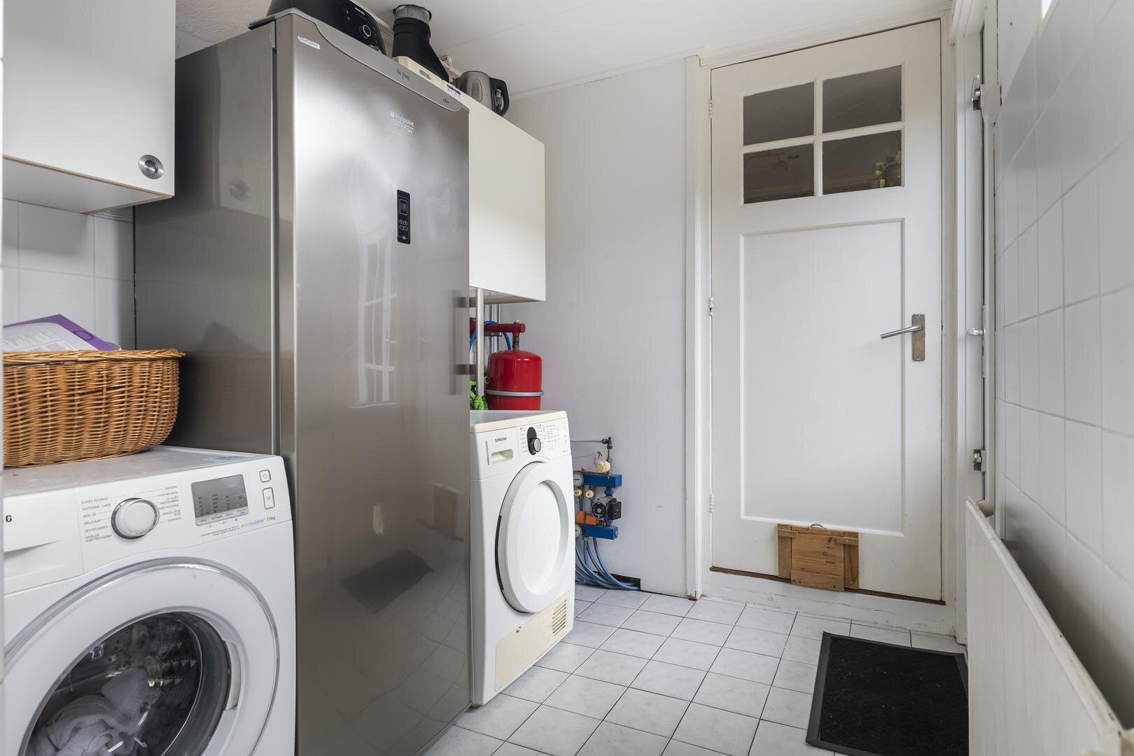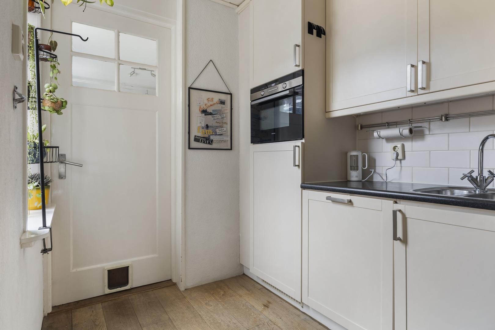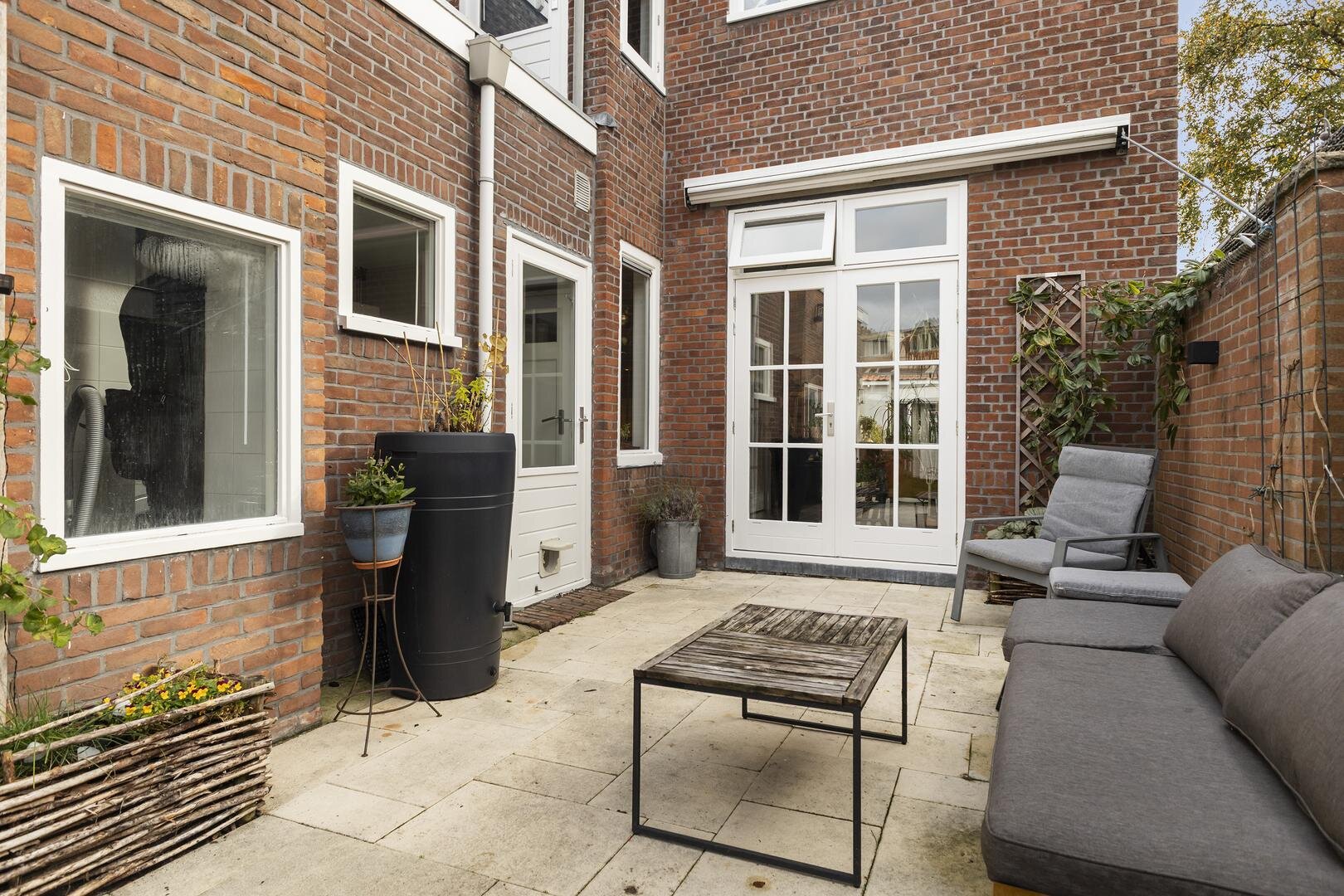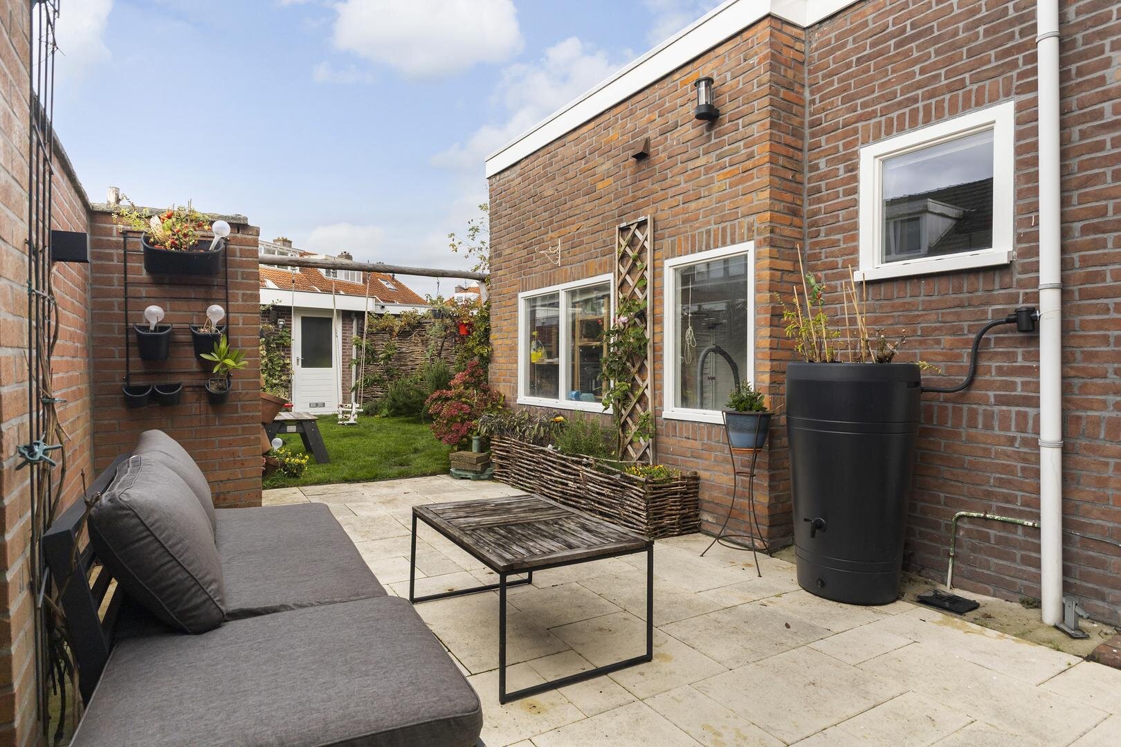 De sfeervolle woonkamer beschikt over hoge plafonds, een eikenhouten vloer met vloerverwarming en grote raampartijen die voor veel natuurlijk lichtinval zorgen. Dankzij de erker en de openslaande deuren naar de zonnige en beschutte tuin, voelt het ruim en aangenaam aan. Er is een open keuken met aansluitend een praktische bijkeuken, waar de CV-ketel, wasmachine-aansluiting en het toilet gevestigd zijn. De eerste verdieping biedt 3 slaapkamers en een badkamer, de zolderverdieping beschikt over een dakkapel over de hele breedte van de woning en 2 slaapkamers. De woning heeft door de jaren heen altijd het nodige onderhoud gehad en recent is de bitumen dakbedekking vervangen.