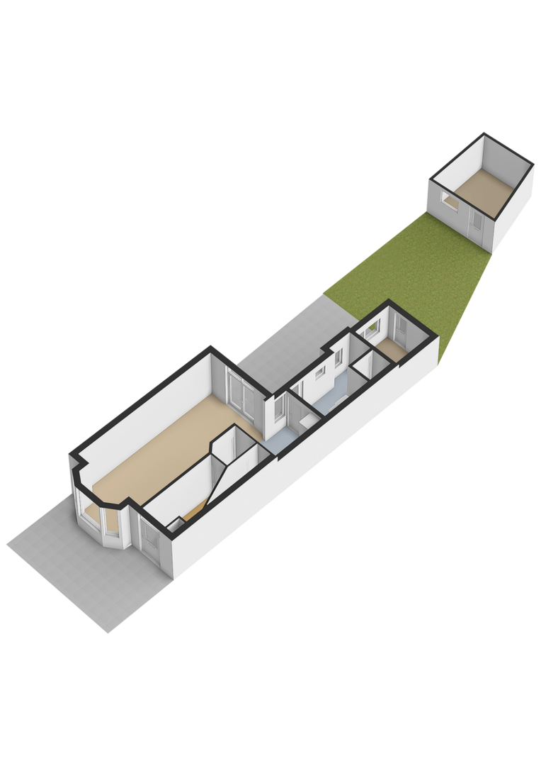 – verrassend diepe achtertuin met drainage, aangebouwde berging en een achterom