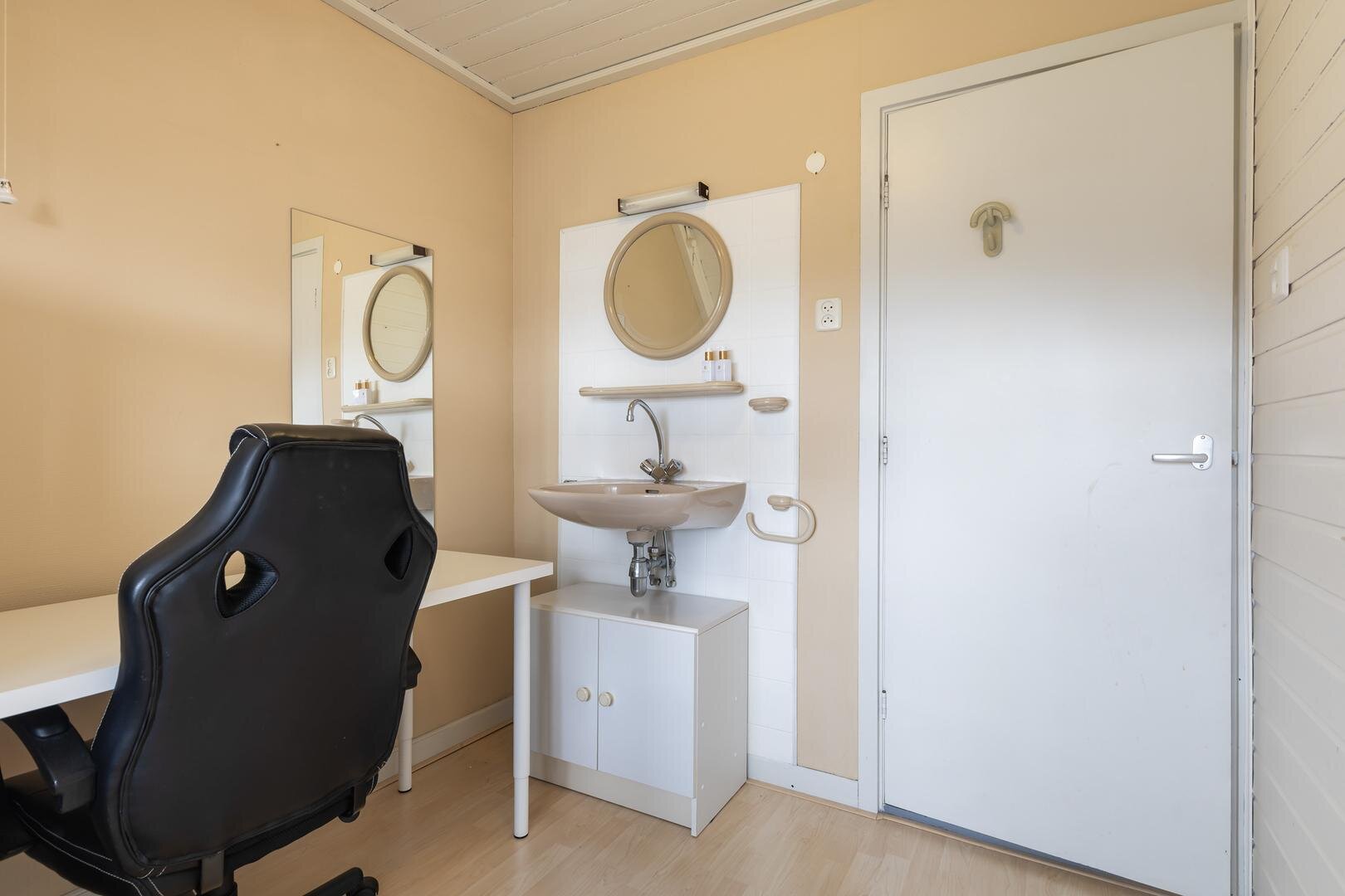 - Slaapkamer 2 (6,3 m²) met een dakkapel aan de voorzijde met uitzicht naar de Waddenzee en wastafel